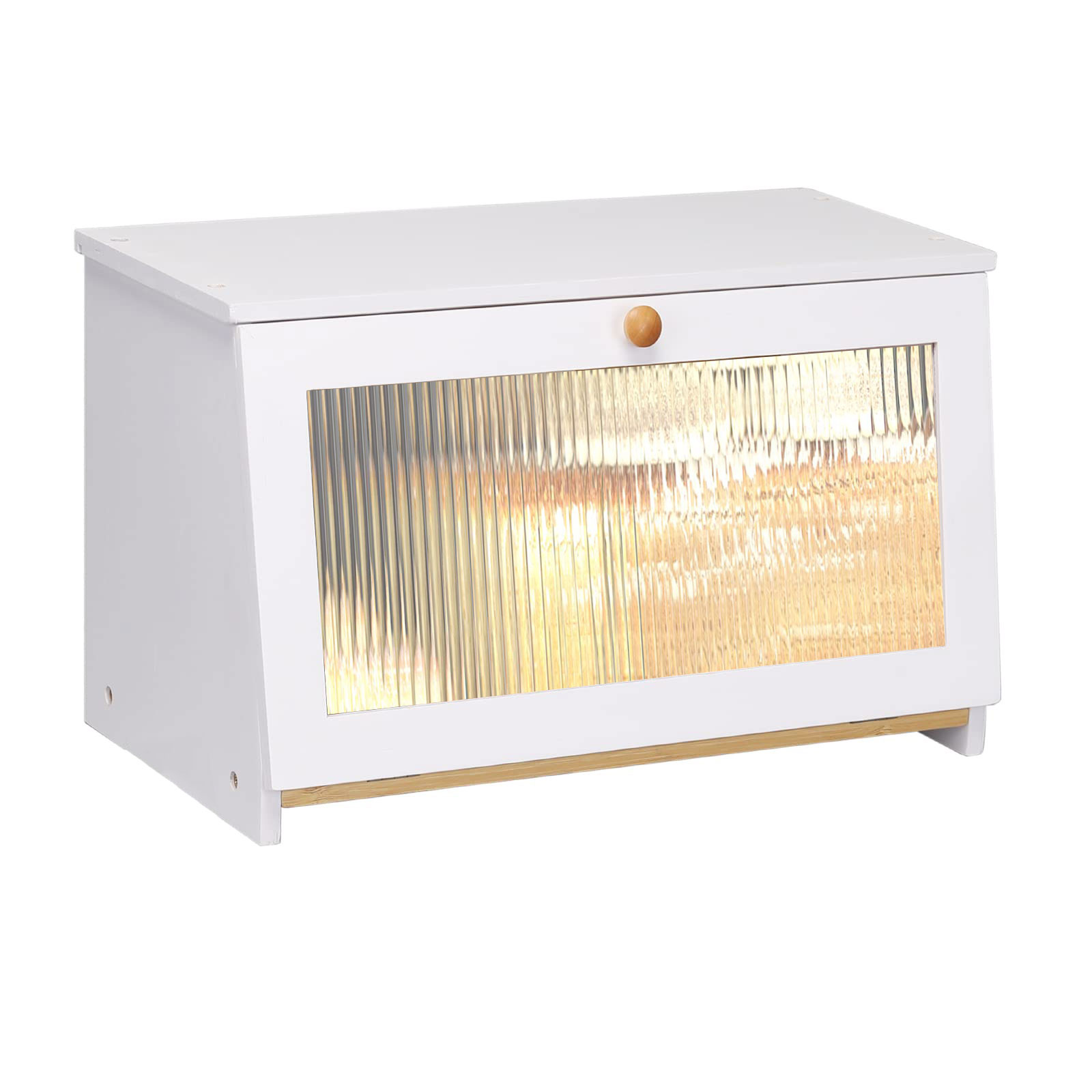 Bamboo Food Storage Container Box glass door baking kitchen food organizing box