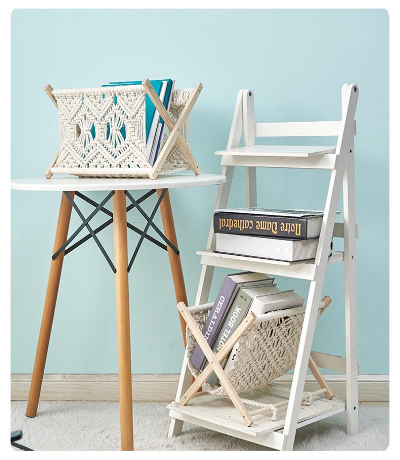 Bavlněná šňůra & Dřeva Úložný stojan Ruční Geometrické Bianco kus