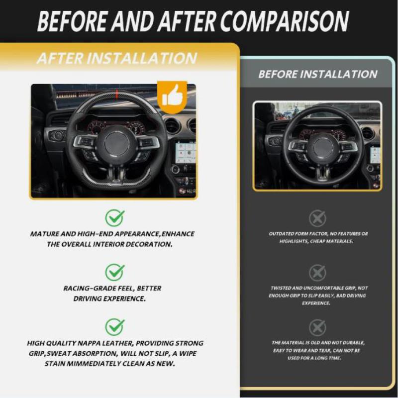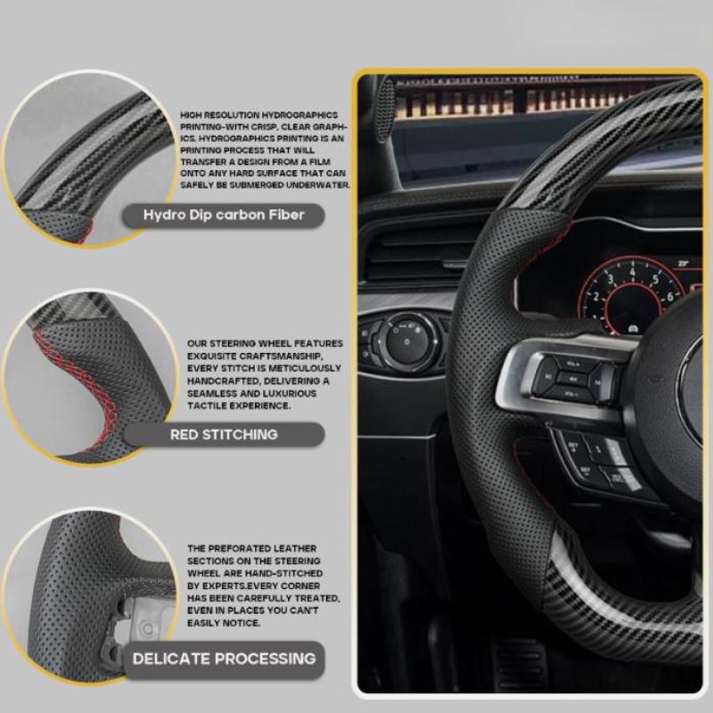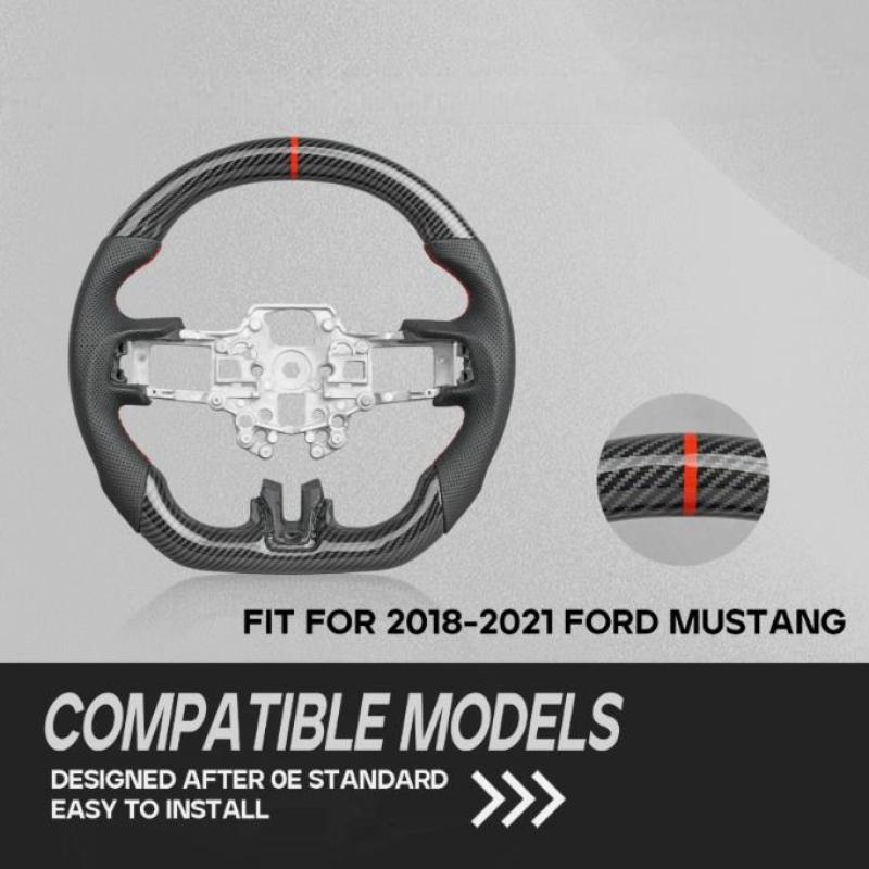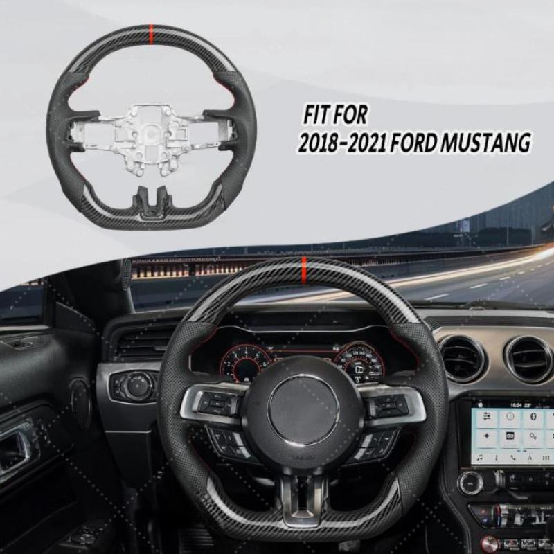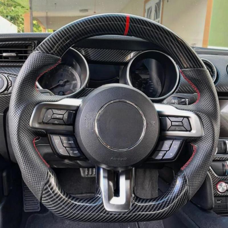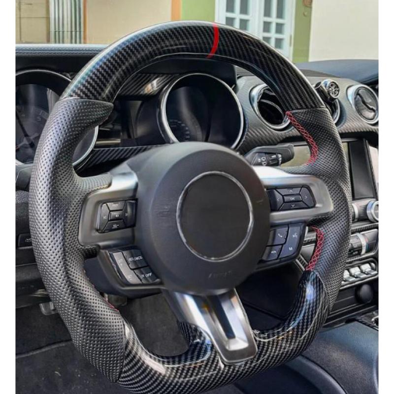 Carbon Fiber Steering Wheel Fit For 2018-2023 Ford Mustang GT Red Line
