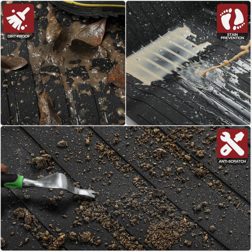 Protiskluzové, chemicky odolné, snadno čistitelné, snadná instalace, nehořlavé, odolné vůči vysokým/nízkým teplotám, lehké, olejivzdorné, voděodolné