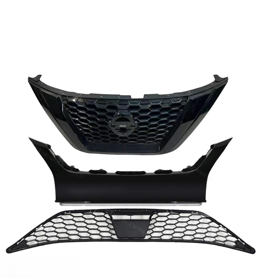 For Nissan Murano 19-23 Gloss Black Front Upper Lower Grille/Bumper Face Bar Trim Step Pad