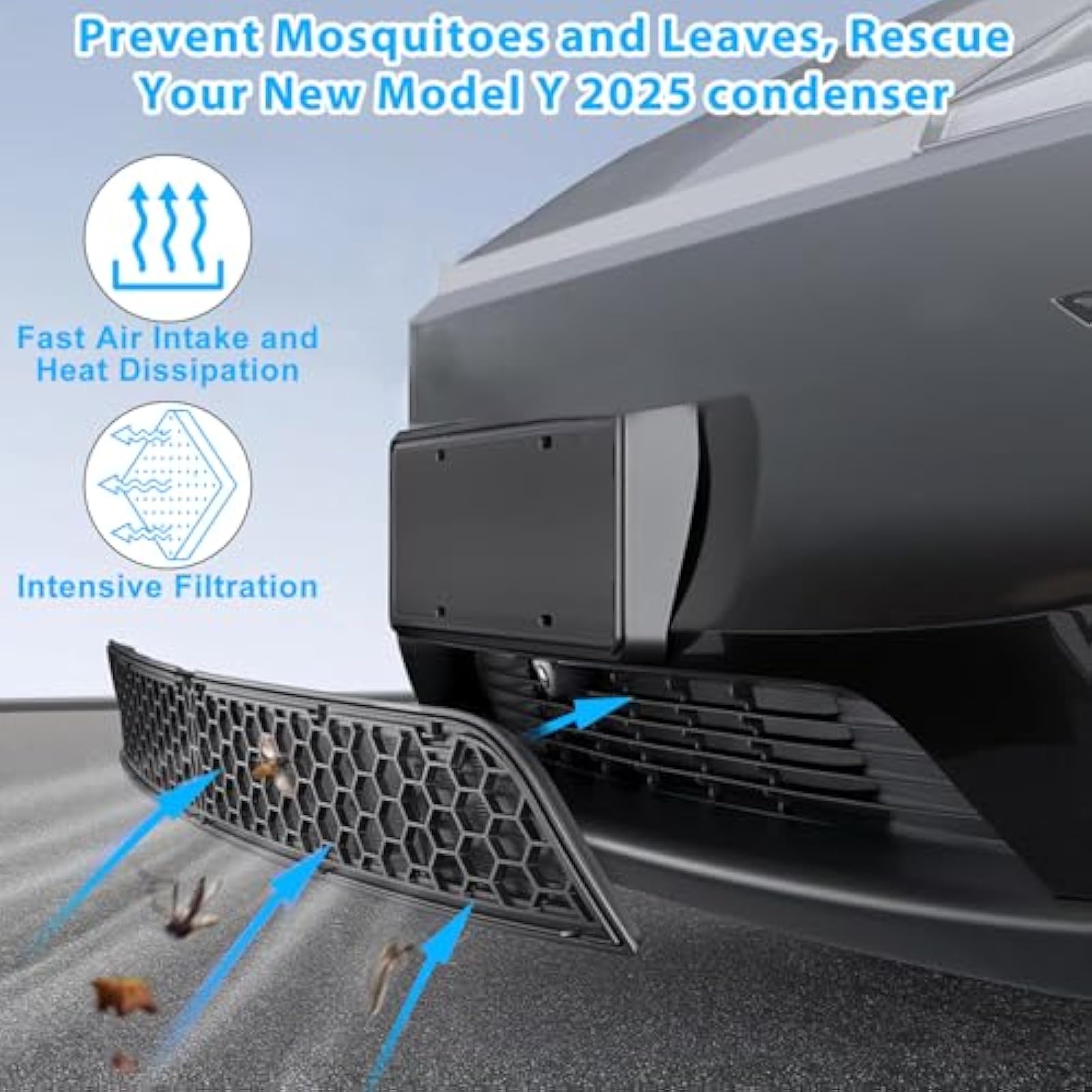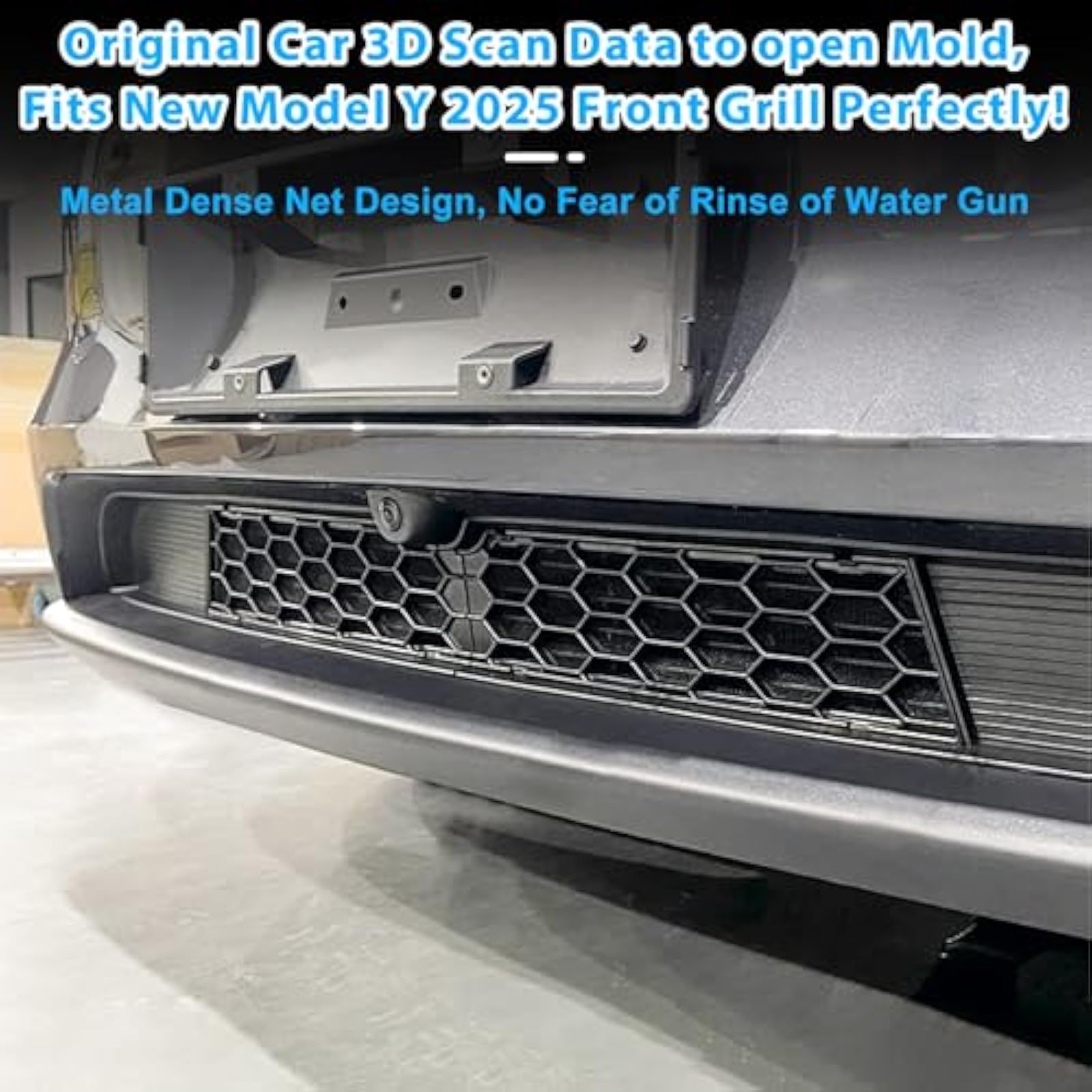 【Perfect Front Grille Mesh for New Model Y】The front mesh grille protective cover specially custom designed for Tesla New Model Y, installed at the front air inlet vent of the car. Uses the original car 3D scan data mold opening technology, 100% matching the original car. Perfect compatible with Tesla NEW Model Y 2025. NOT COMPATIBLE WITH MODEL Y 2019-2024.