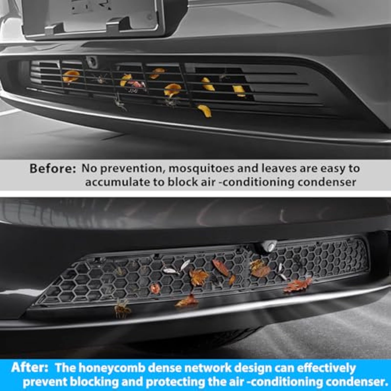 【Extend the Lifespan of New Model Y Condenser】This grill mesh is like having a screen door in front of of your radiator. The front mesh grill stops leaves and rocks and smaller objects from interfering with the required airflow and they also stop objects from puncturing your radiator, and extend Lifespan of New Model Y Condenser. can protecting your car and elevate your car appearance, it will be a one of the necessary auto accessory for you.