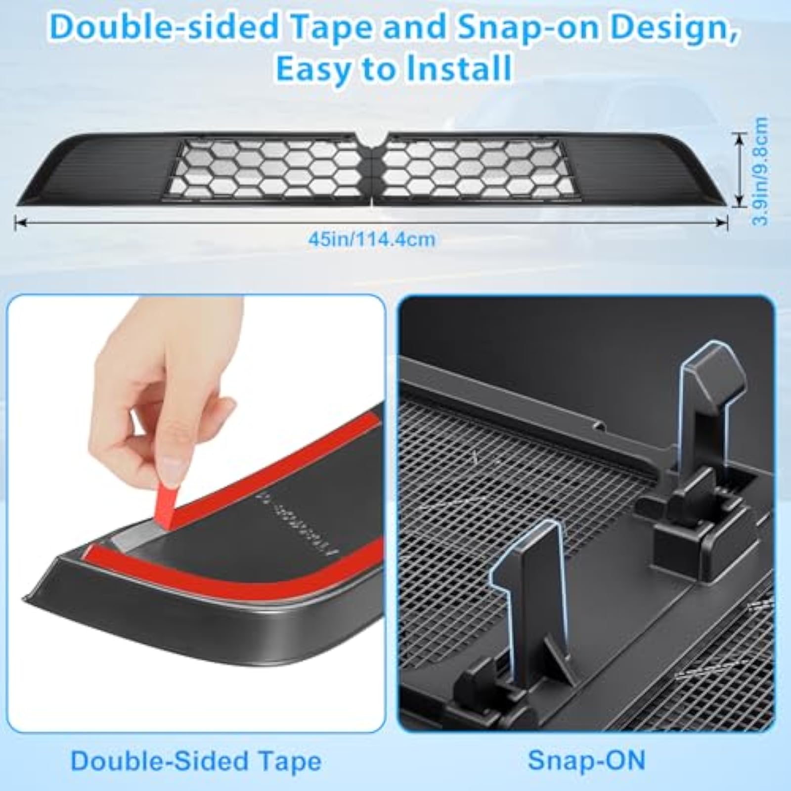 【Super Easy to Install & Remove】This insert grill replacement for Tesla New Model Y adopt snap-in mounting, you can easy to install and remove. press in to the air intake vent area. Firmly fixed without falling off, and only need to wash with water to keep clean.