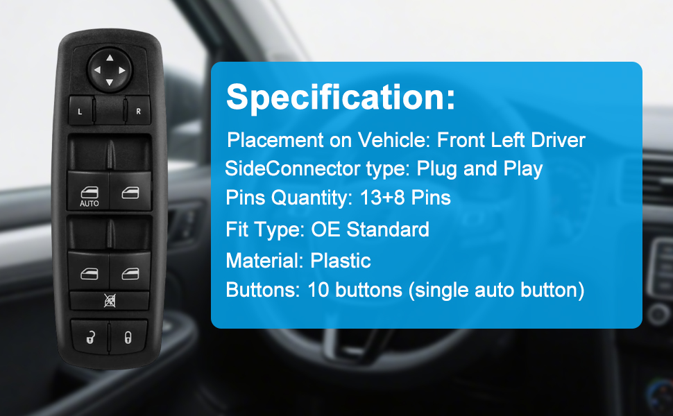 68084001AB, 68084001AC, 68084001AD, dveřní spínač, hlavní spínač elektrického ovládání oken, spínač oken na straně řidiče