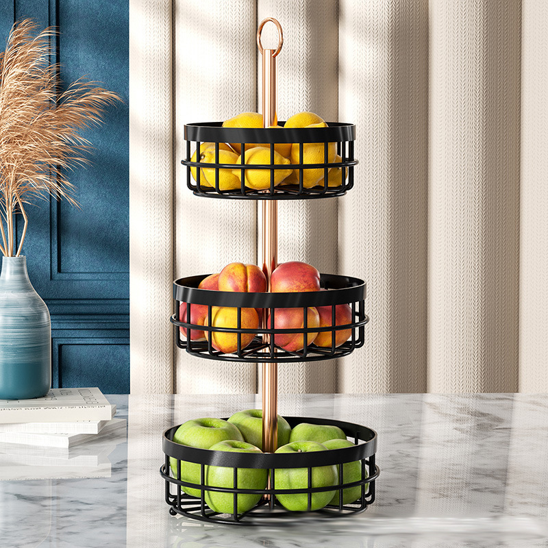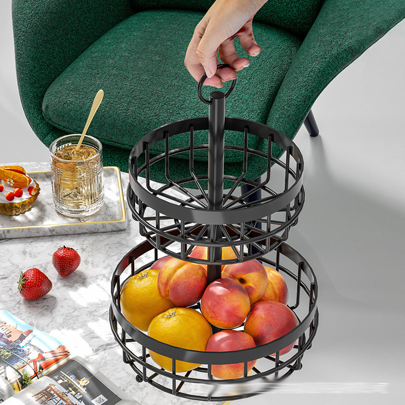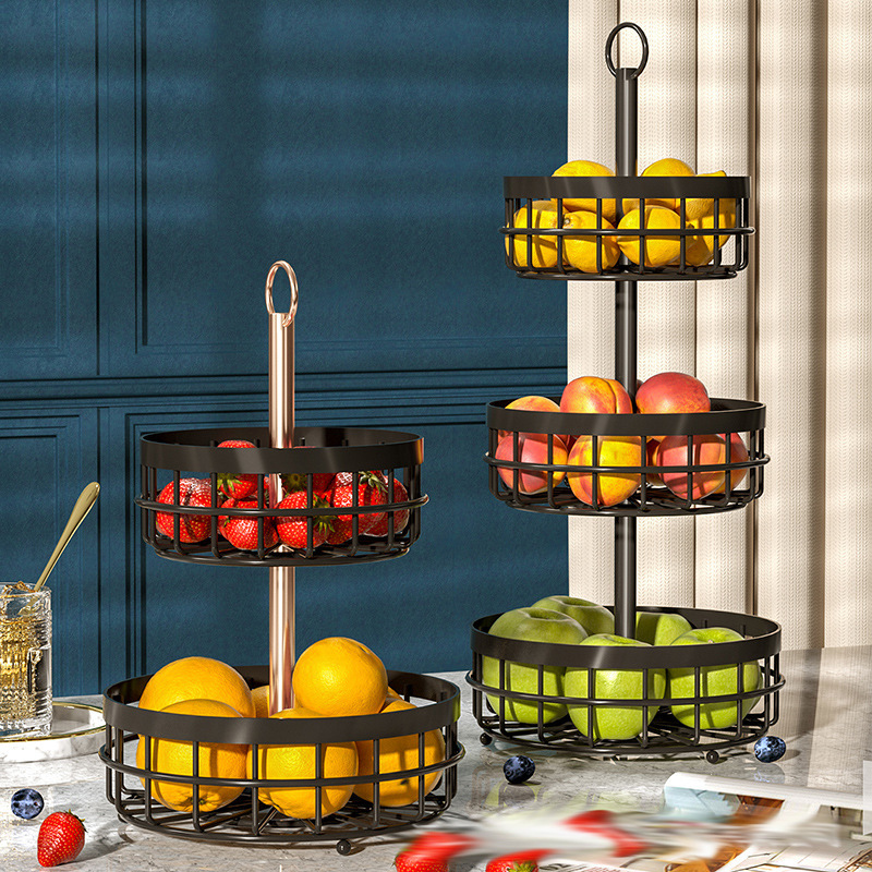 Nordic Style Double Layer Iron Fruit Basket Creative Fruit Plate Storage Basket Snack Rack