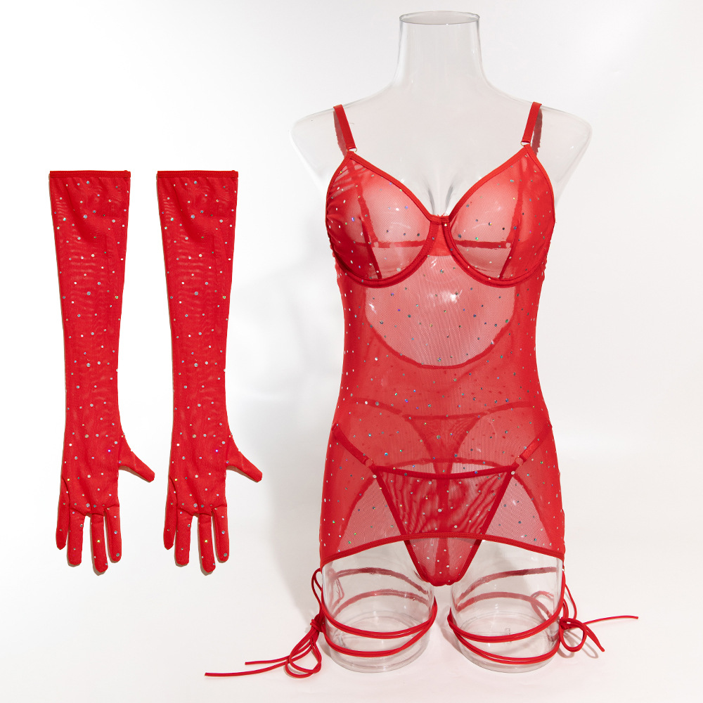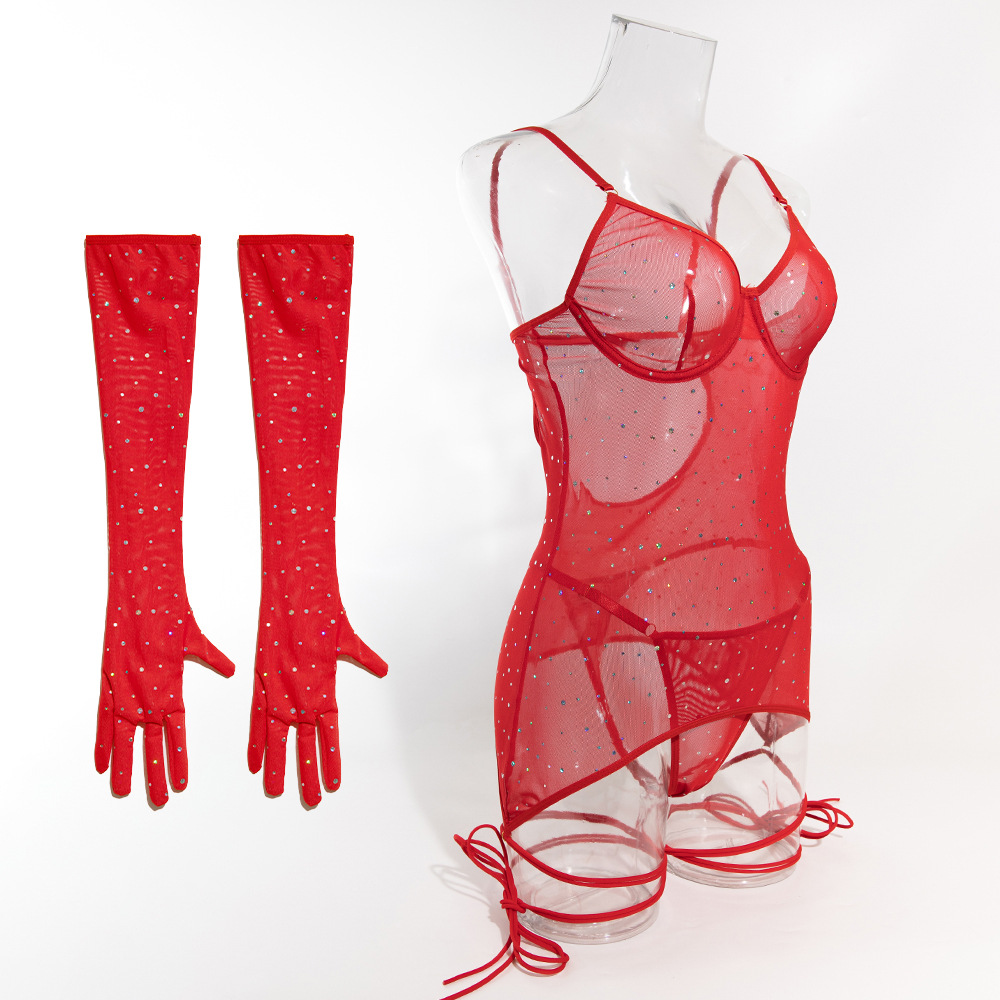 Poliestere Sexy Teddy Spodní prádlo & Rukavice & Teddy Rosso kus