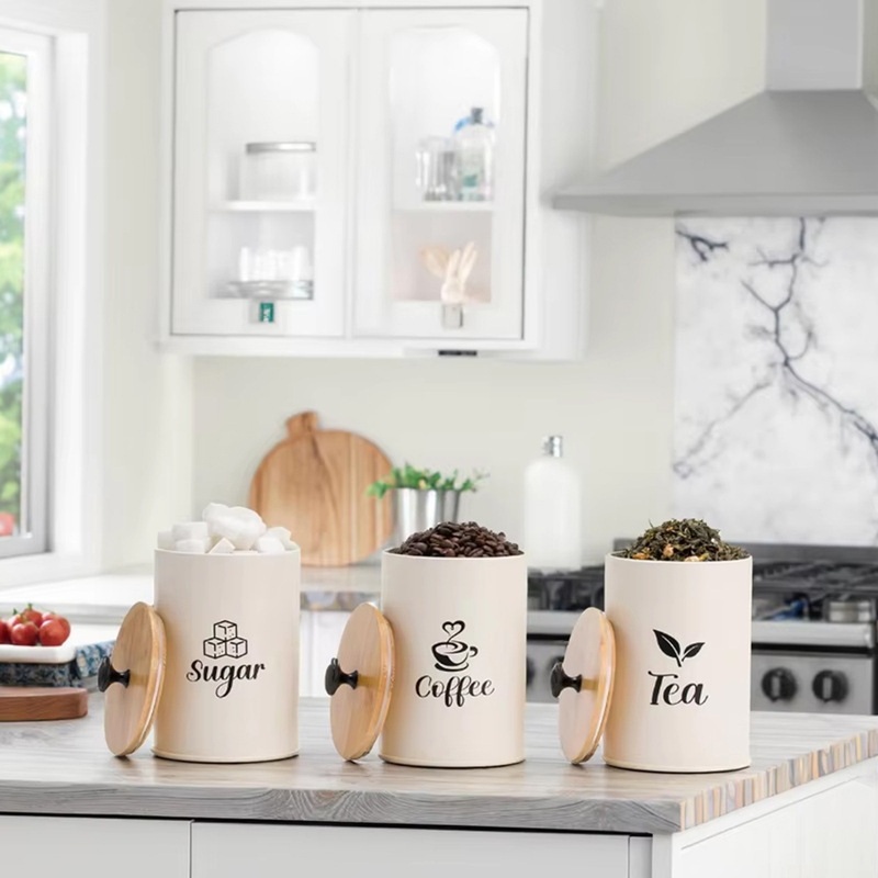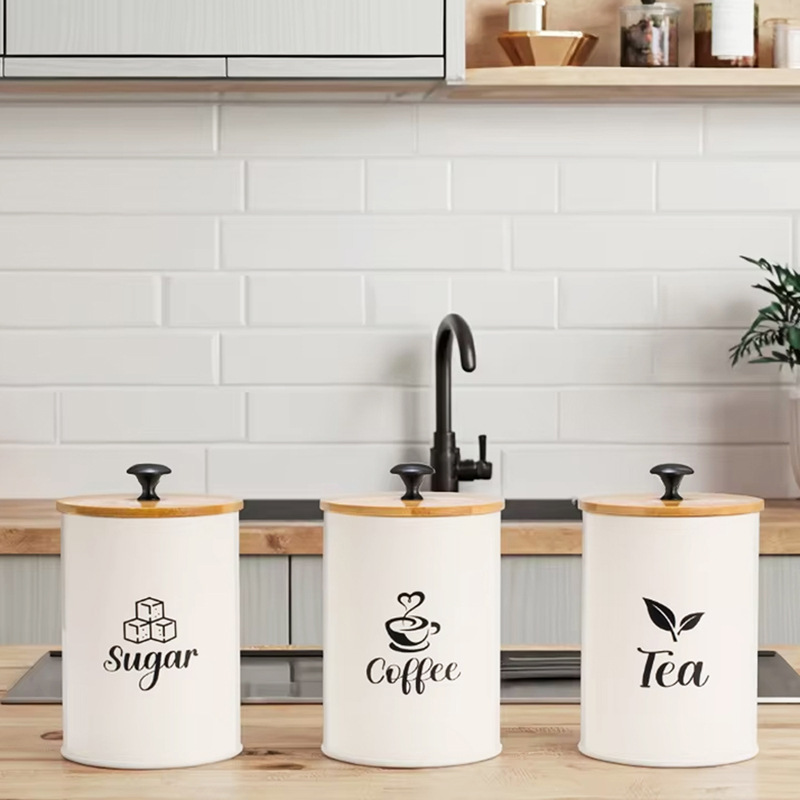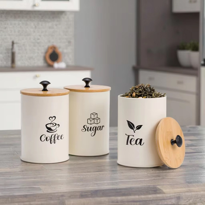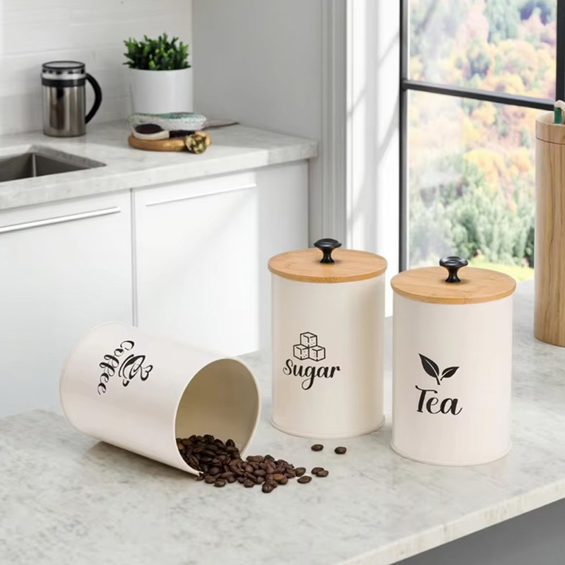Pozinkované železo & Bambusové Skladování potravin kontejner láhev Písmeno Bianco Nastavit