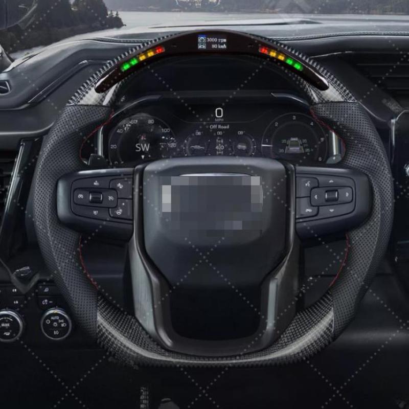 Sportovní volant z pravého uhlíkového vlákna LED pro 2022+ GMC Sierra 1500 s vyhřívaným