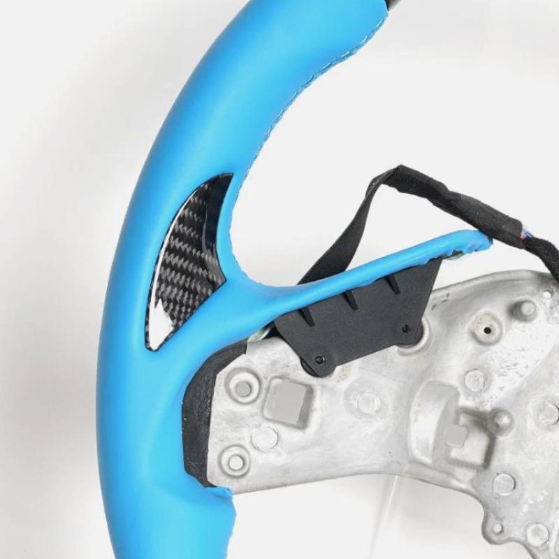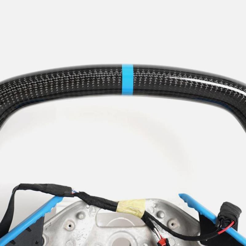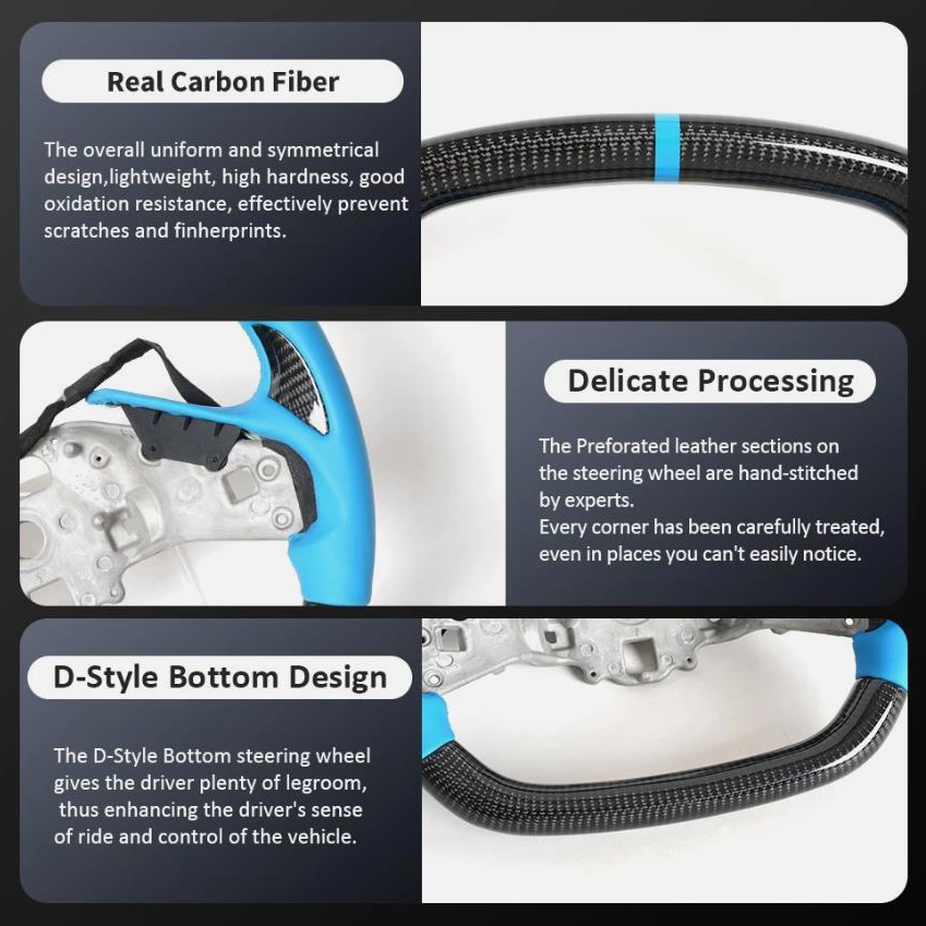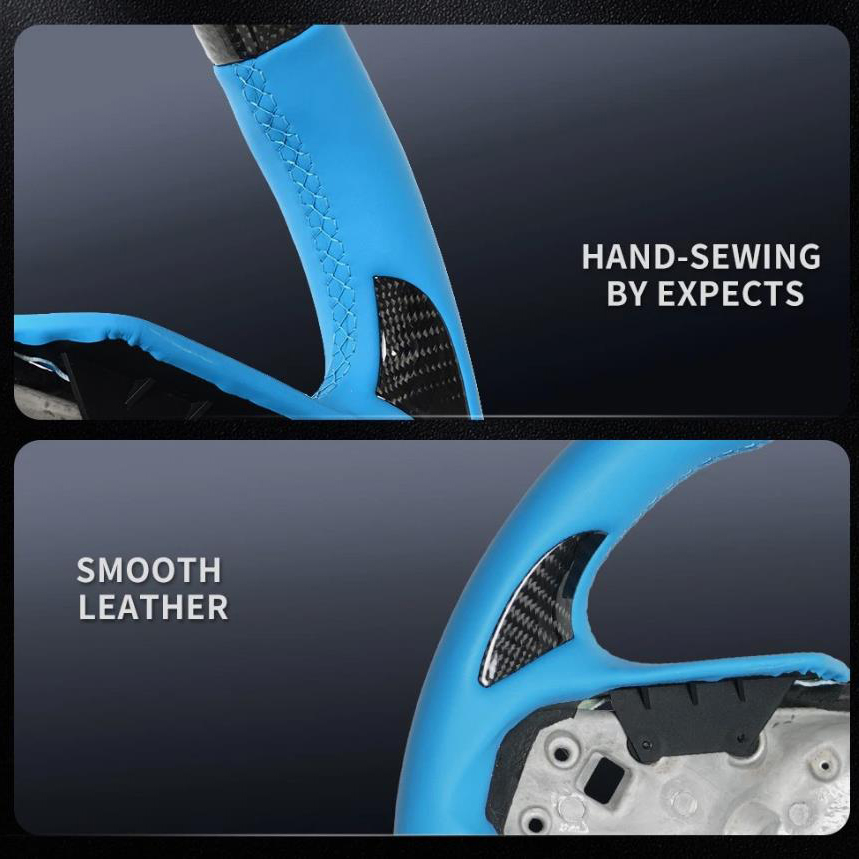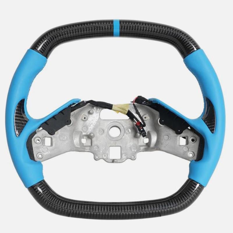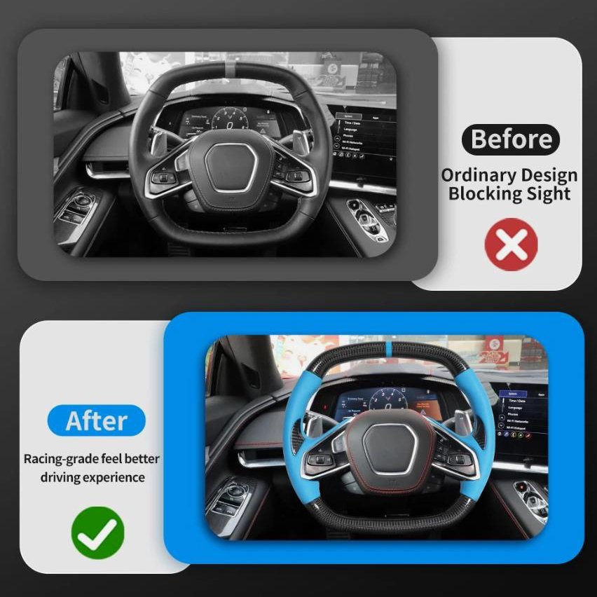 Real Carbon Fiber Steering Wheel For Corvette C8 20-25 with Heated Blue Leather