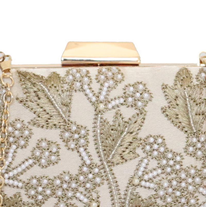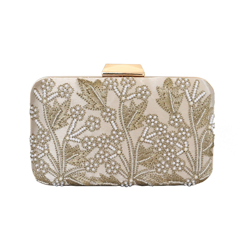 Satén & Poliestere Spojková taška Perla di plastica listový vzor Zlato kus