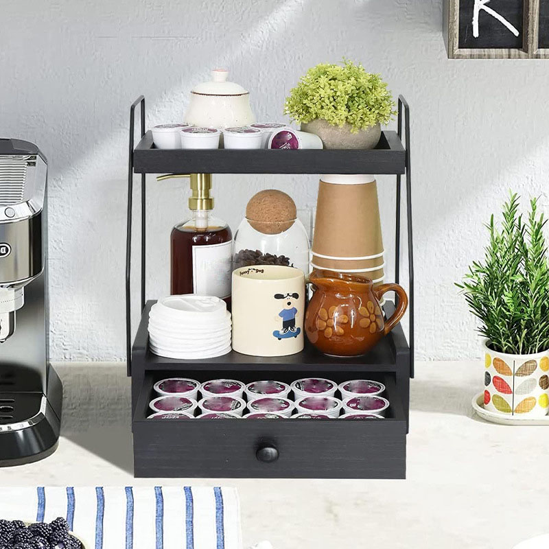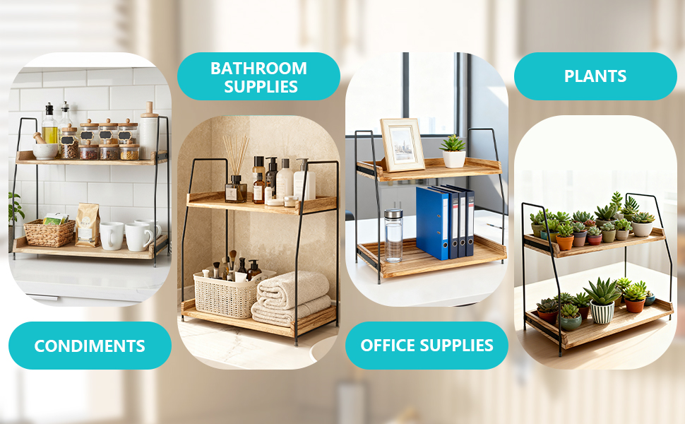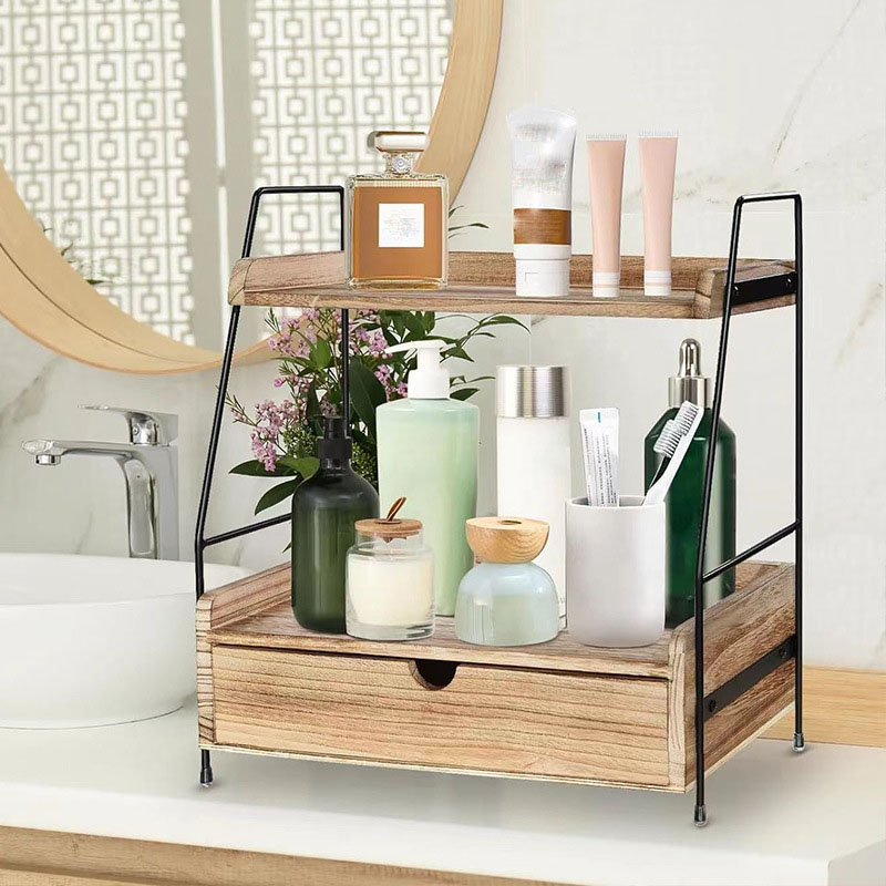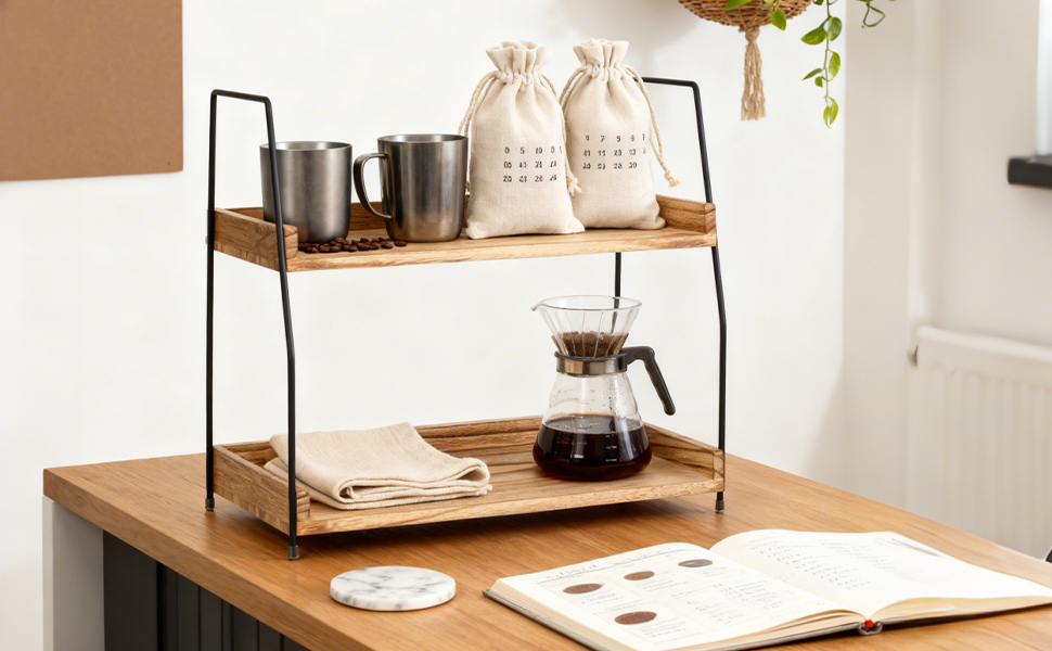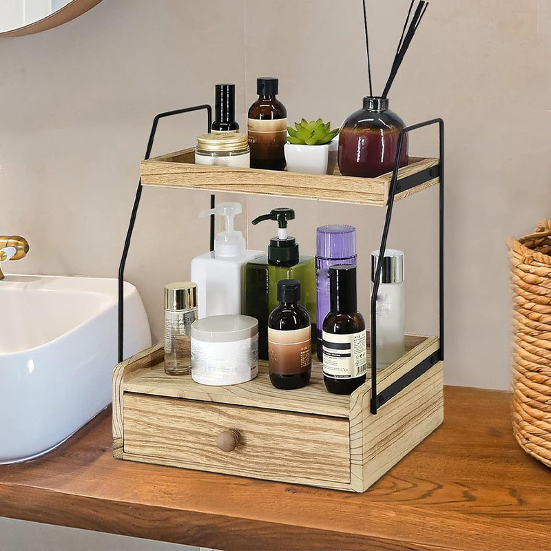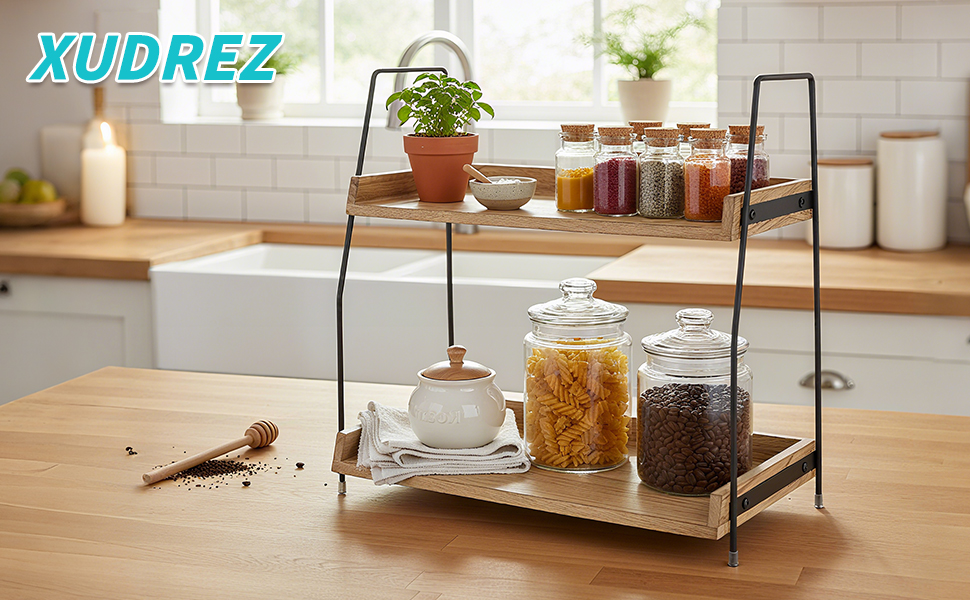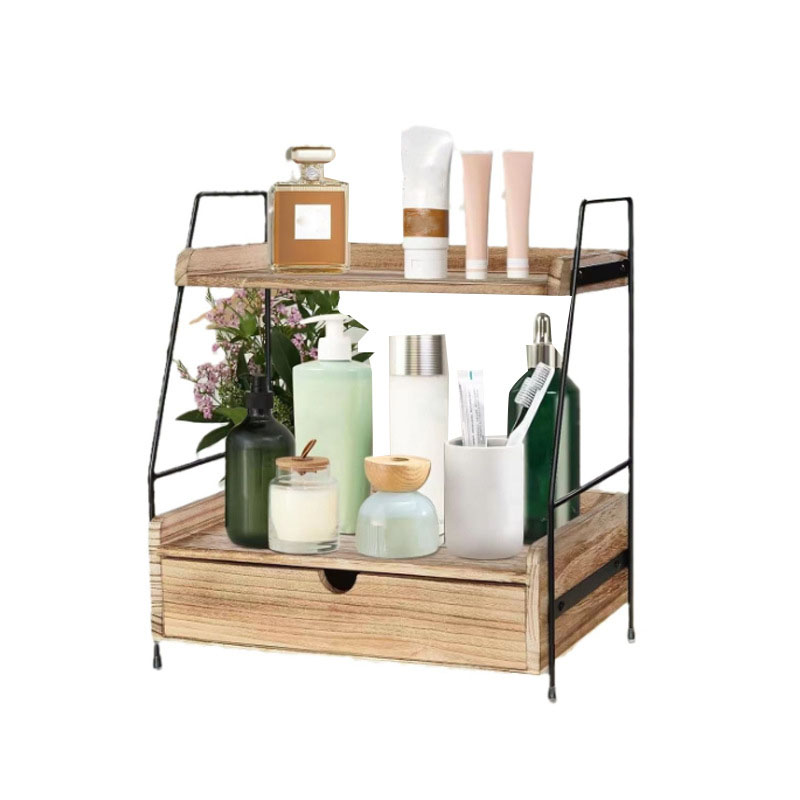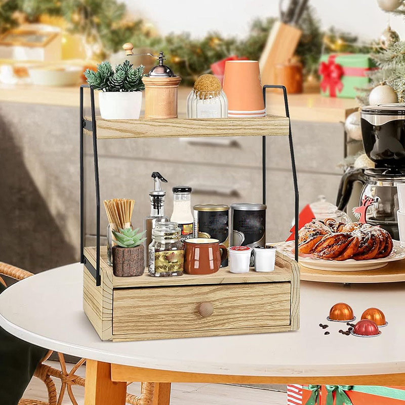 Dřevěný dvouvrstvý stolní úložný stojan Kuchyňský úložný stojan na koření