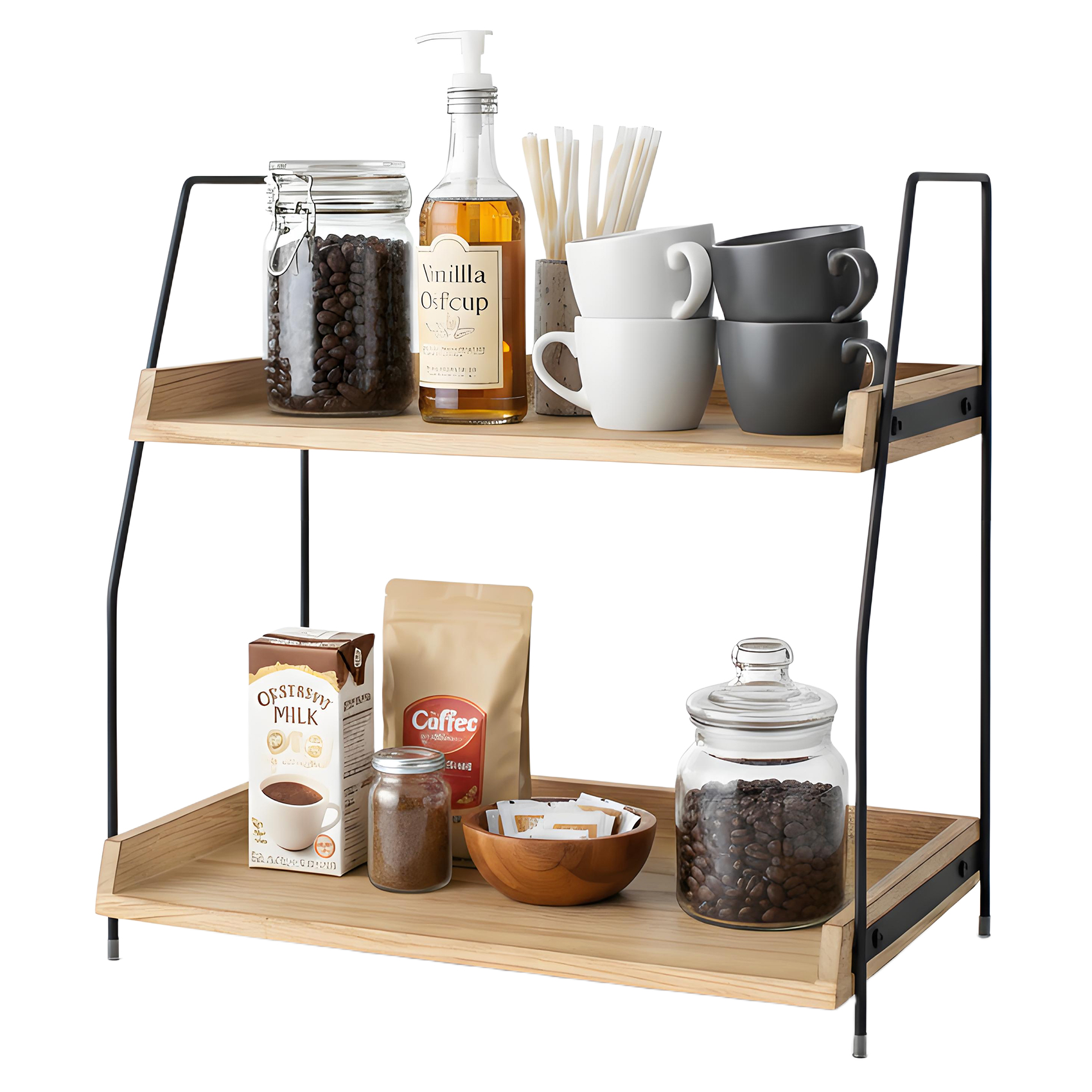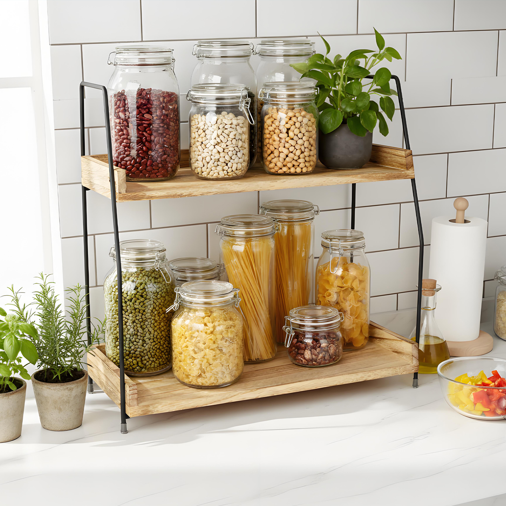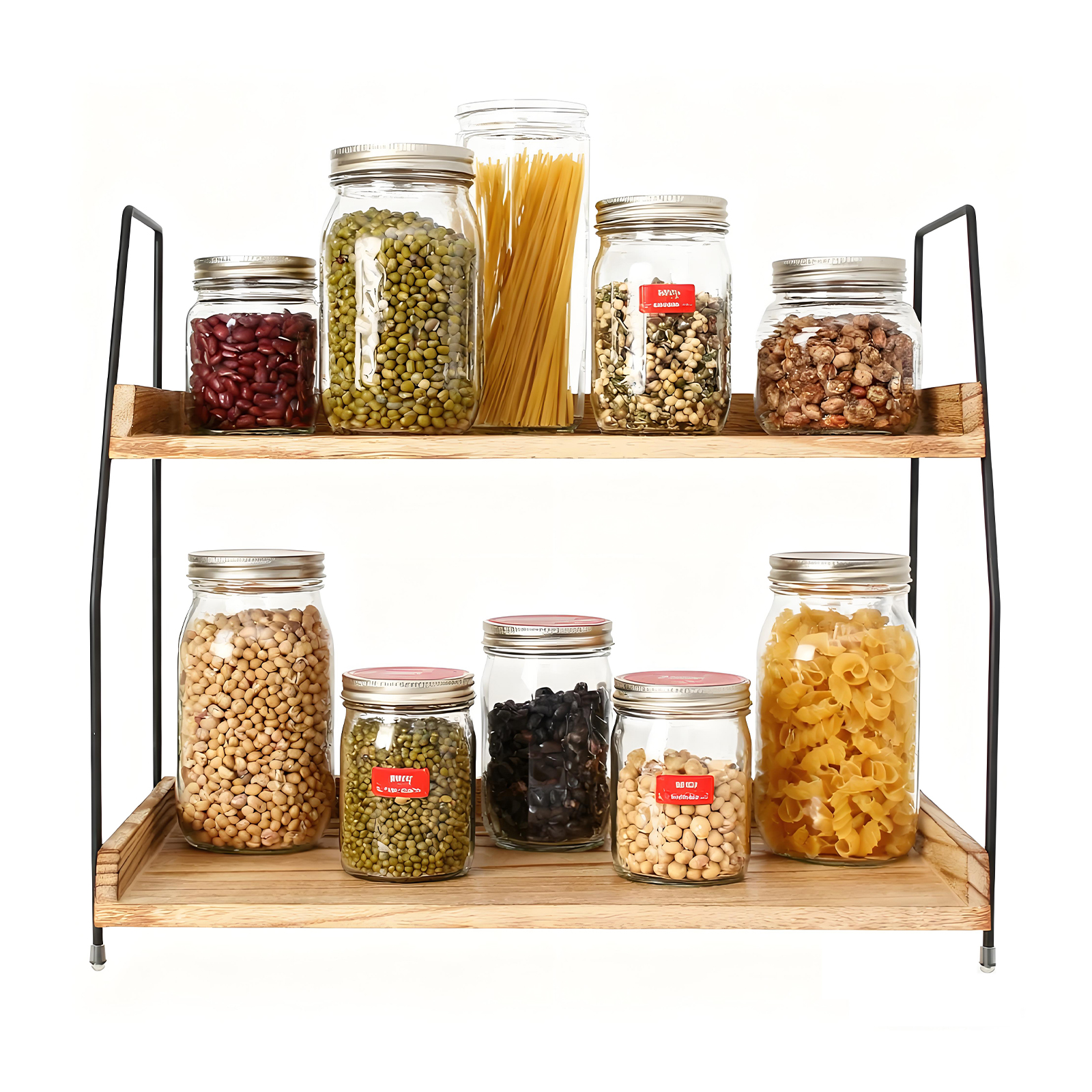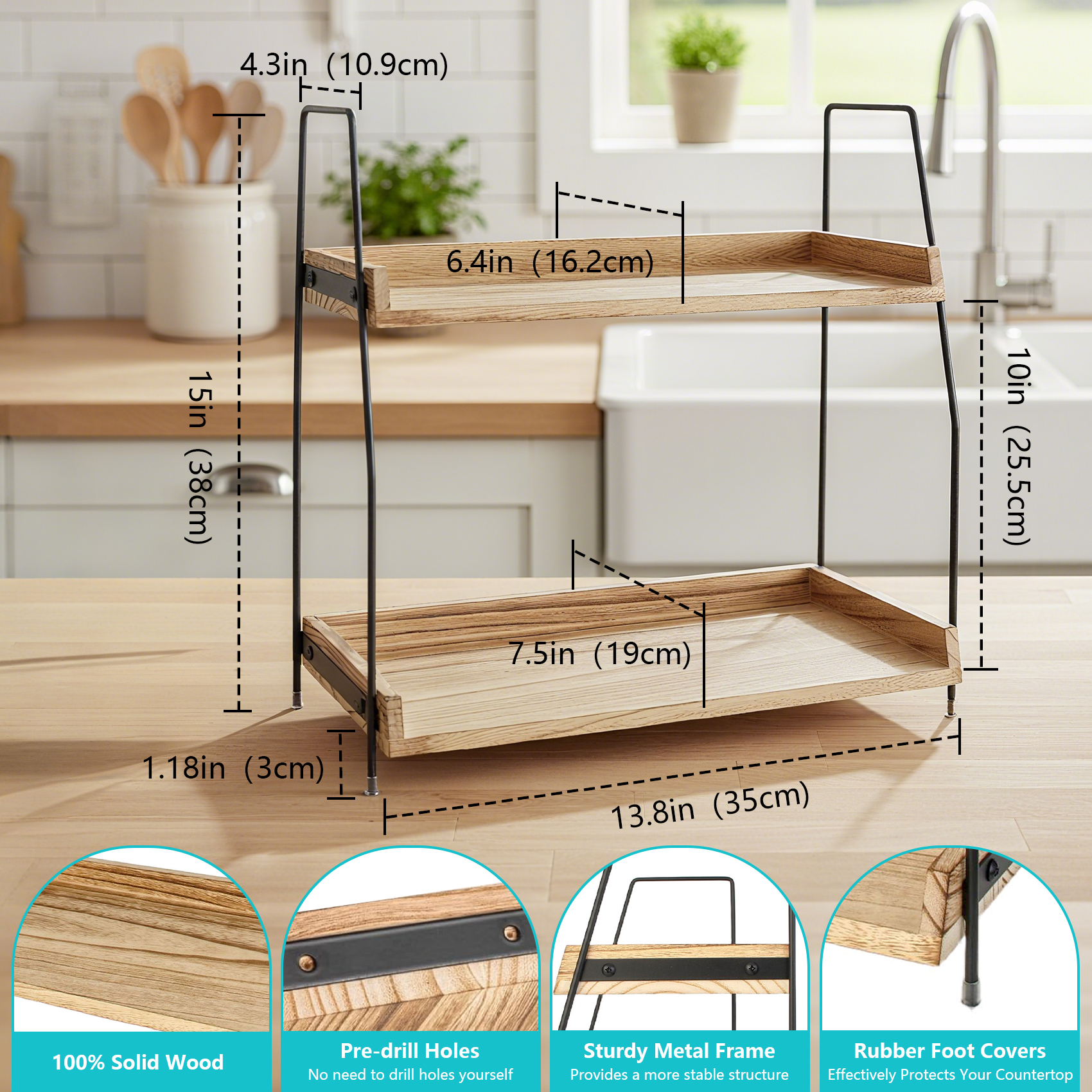 Dřevěný dvouvrstvý stolní úložný stojan Kuchyňský úložný stojan na koření