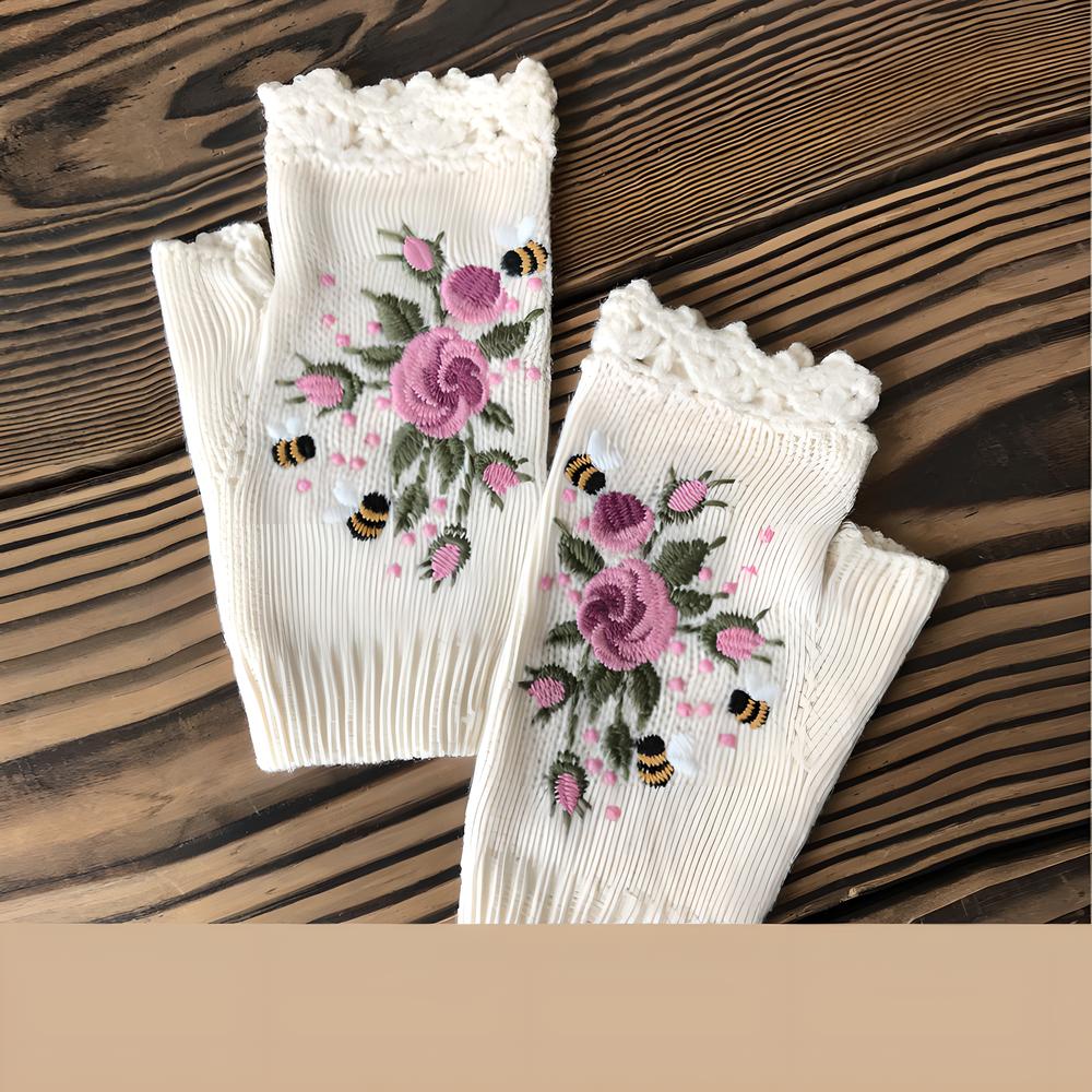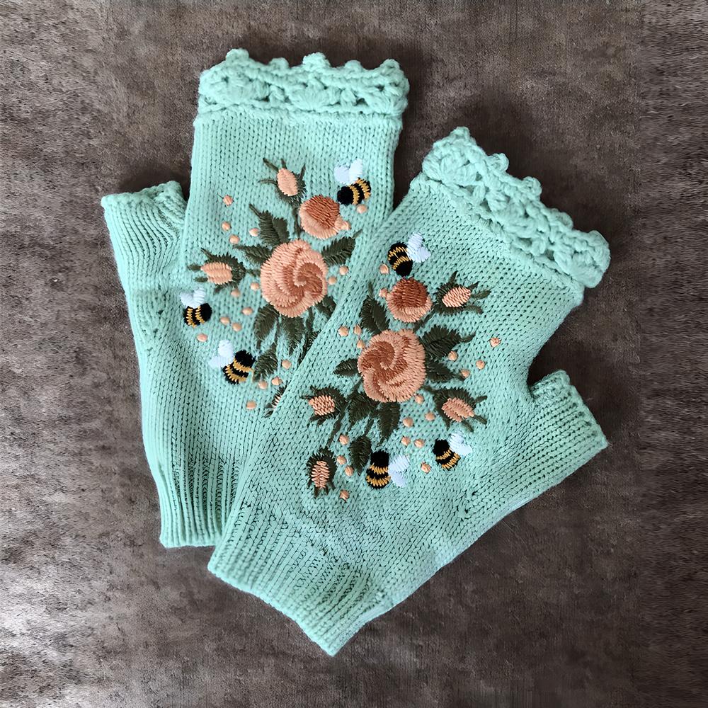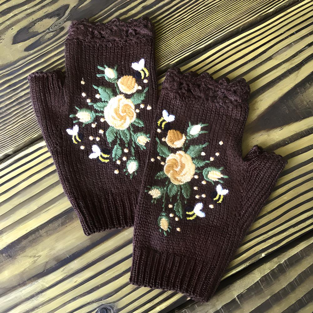 Acryl Halber Finger handschuh, Bestickt, mehr Farben zur Auswahl, Paar