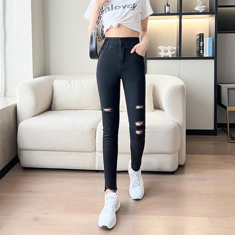 Baumwolle Frauen Lange Hosen, Gewaschen, Solide, Schwarz, Stück