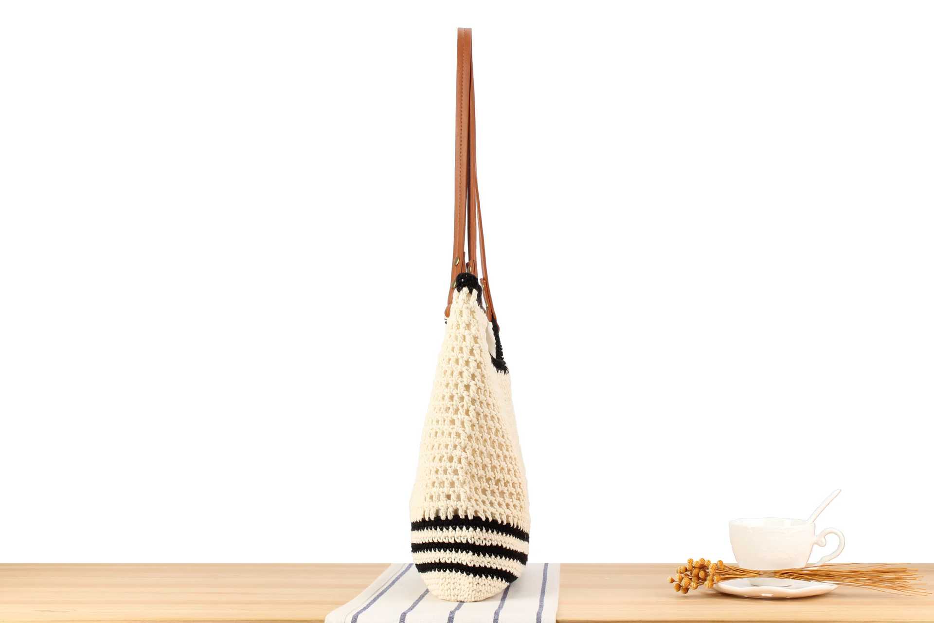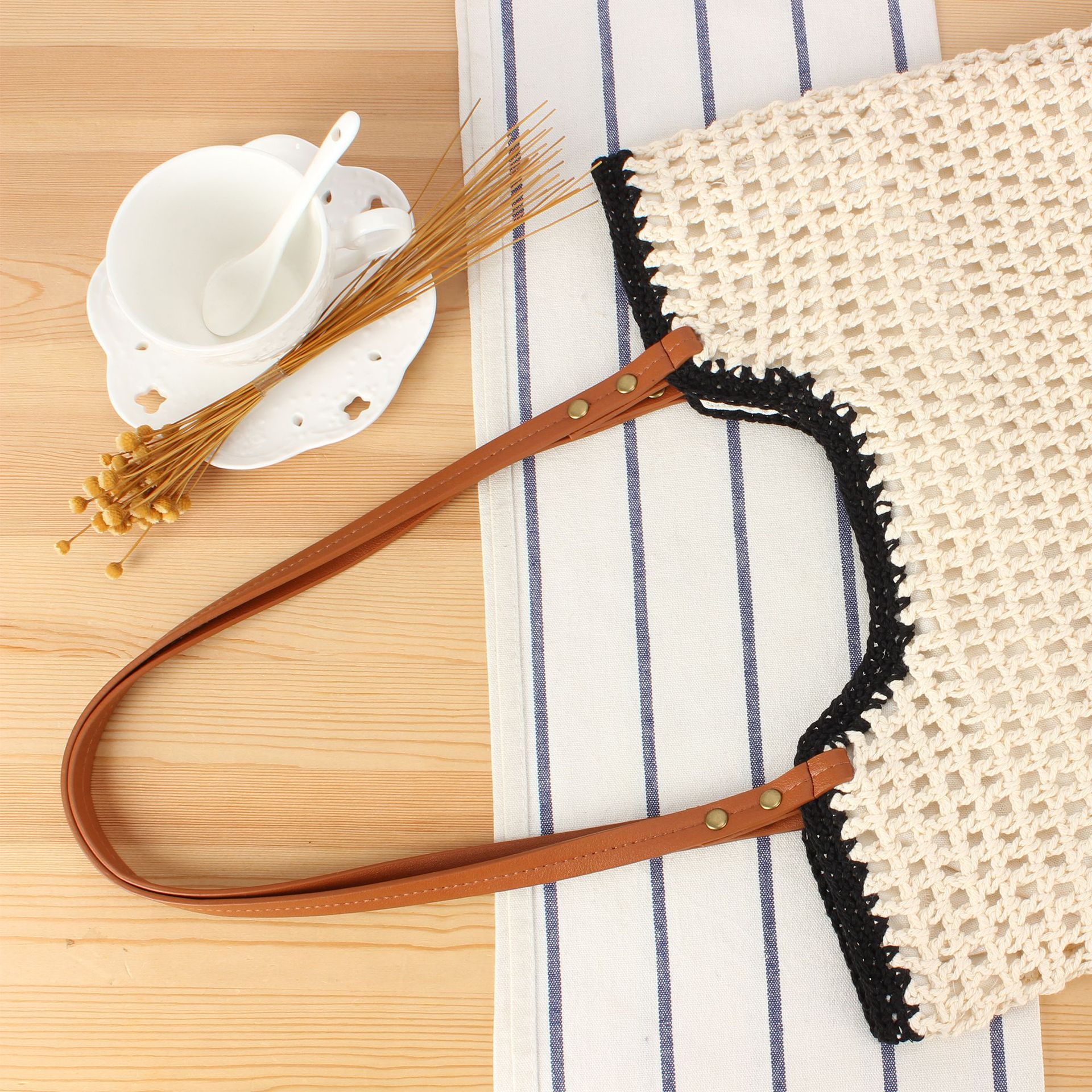 Baumwollschnur Gewebte Schultertasche, PU Leder & Polyester, Gestreift, mehr Farben zur Auswahl, Stück