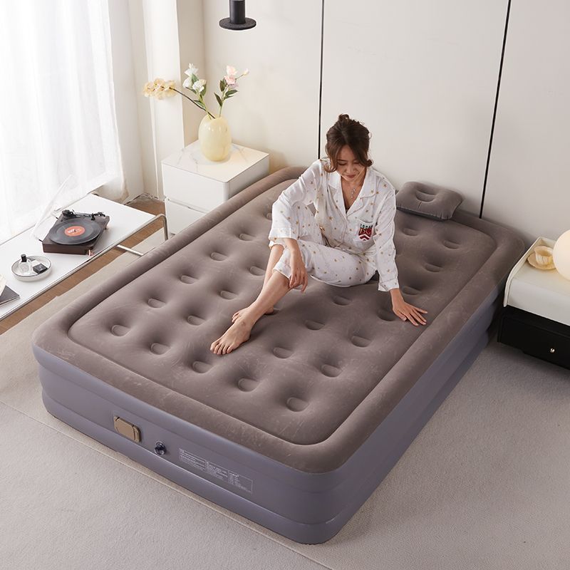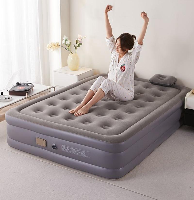 Beflockung Stoff & Pvc Aufblasbare Bettmatratze, Solide, Grau, Stück