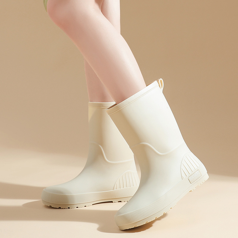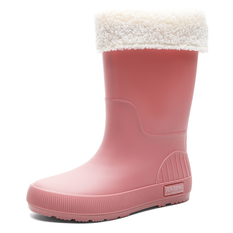Casual Wear-resistant Water Shoes Women's Outfit PVC Waterproof Non-slip fleece-lined Rain Shoes
