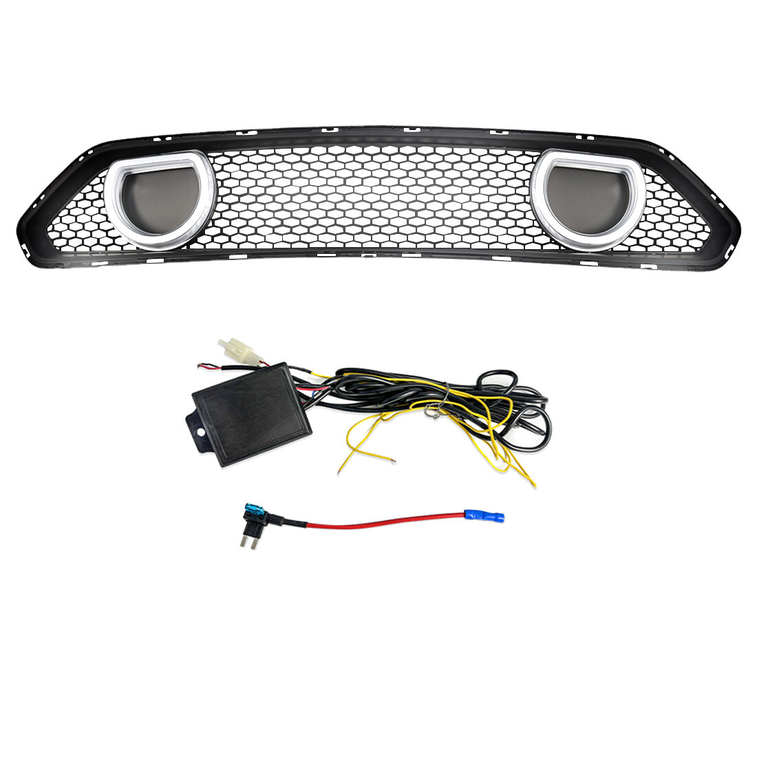 Für 18-23 Ford Mustang Mach 1 Stil Glänzend Schwarz Front DRL LED Kühlergrill Abdeckung