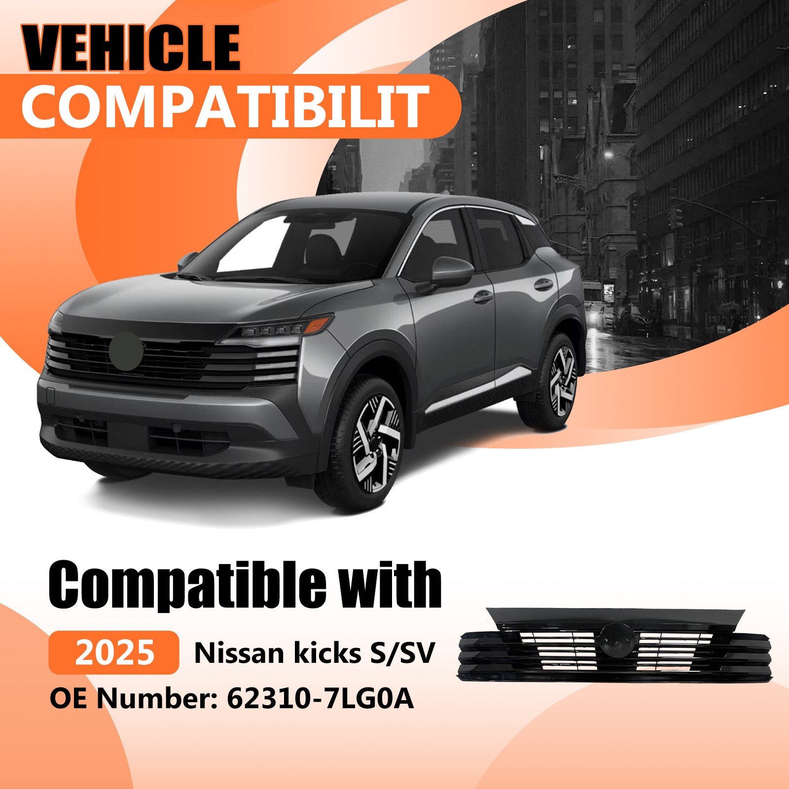 Front Upper Grille Gloss Black Grill For Nissan Kicks S SV 2025 62310-7LG0A