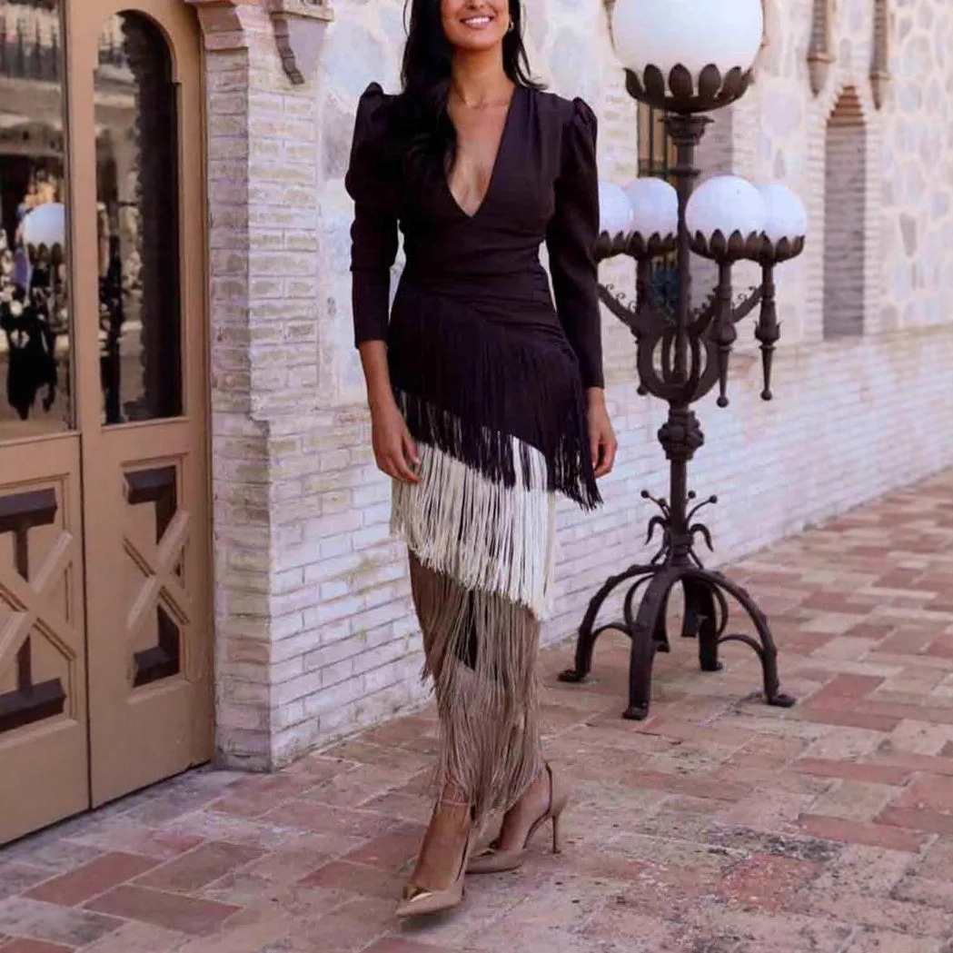 Light greenDark bluePinkBrownLeopard print encrypted tassel free size