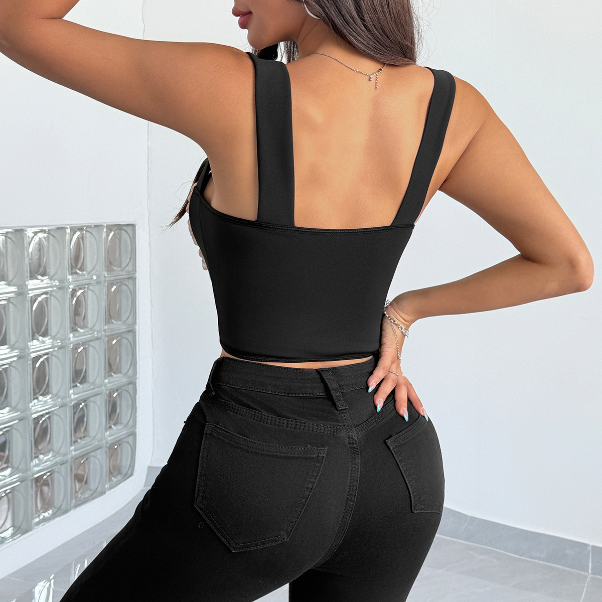 Polyester Camisole, Solide, Schwarz,  Stück