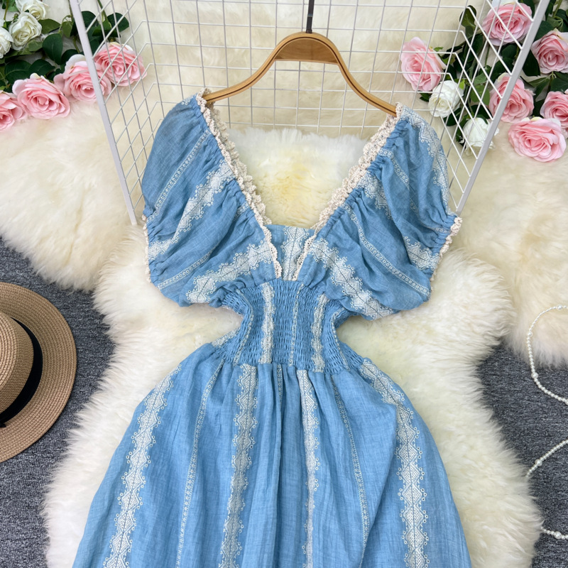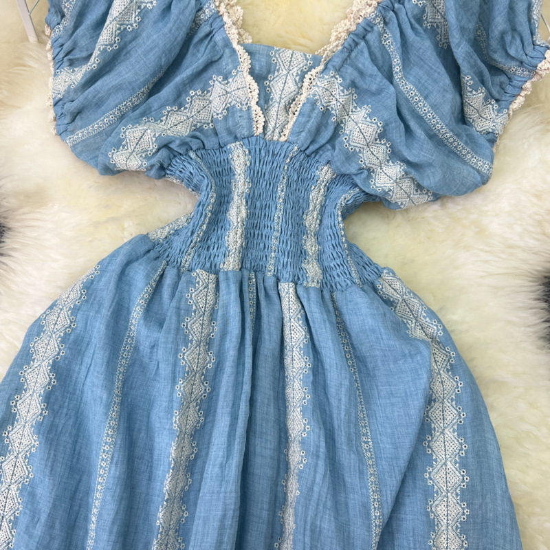 Polyester Einteiliges Kleid, Blau, Stück