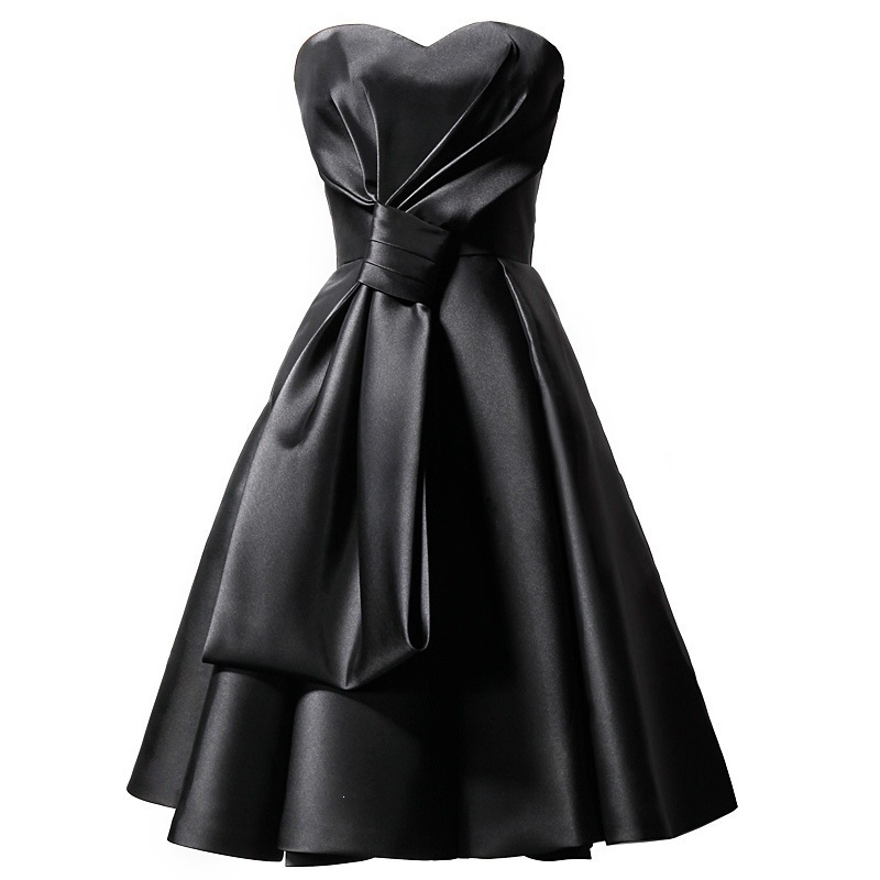 Polyester Kurze Abendkleid, Solide, Schwarz, Stück