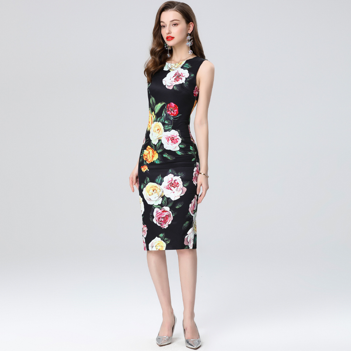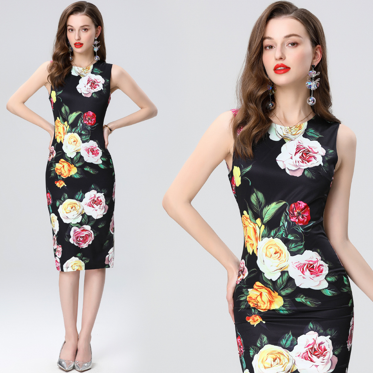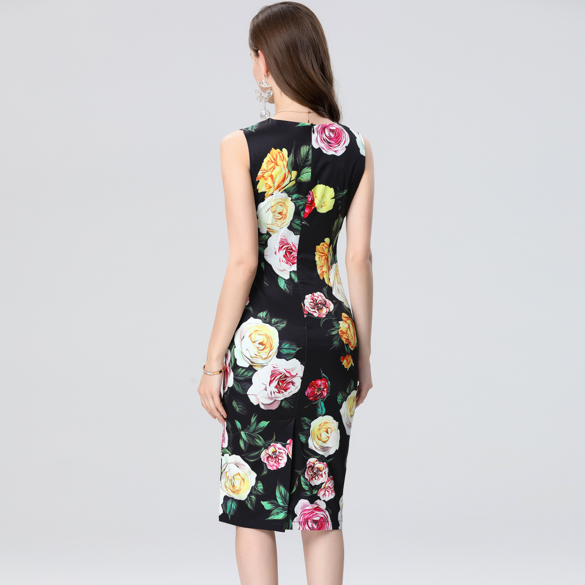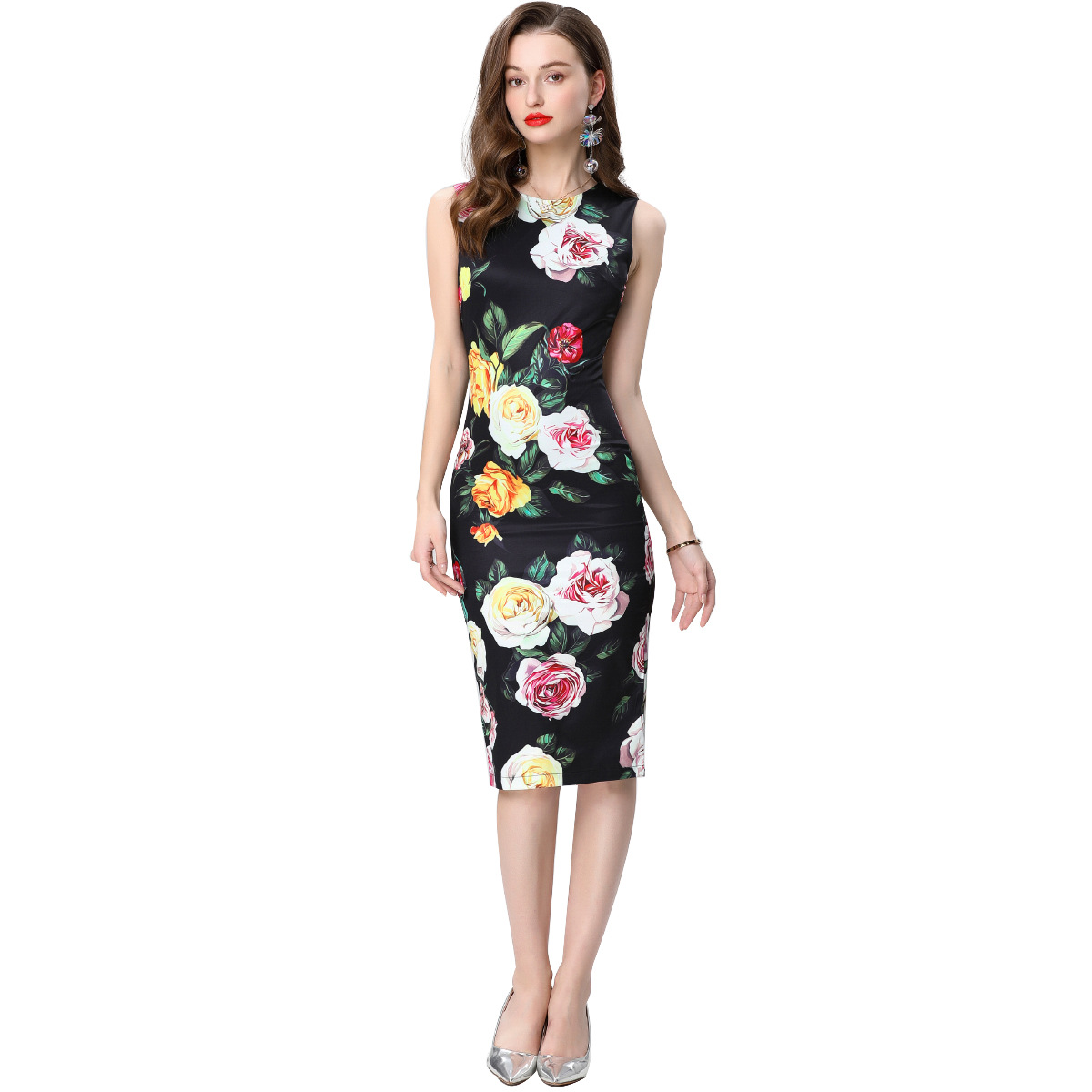 Polyester Sexy Paket Hip Kleider, Gedruckt, Floral, Schwarz, Stück