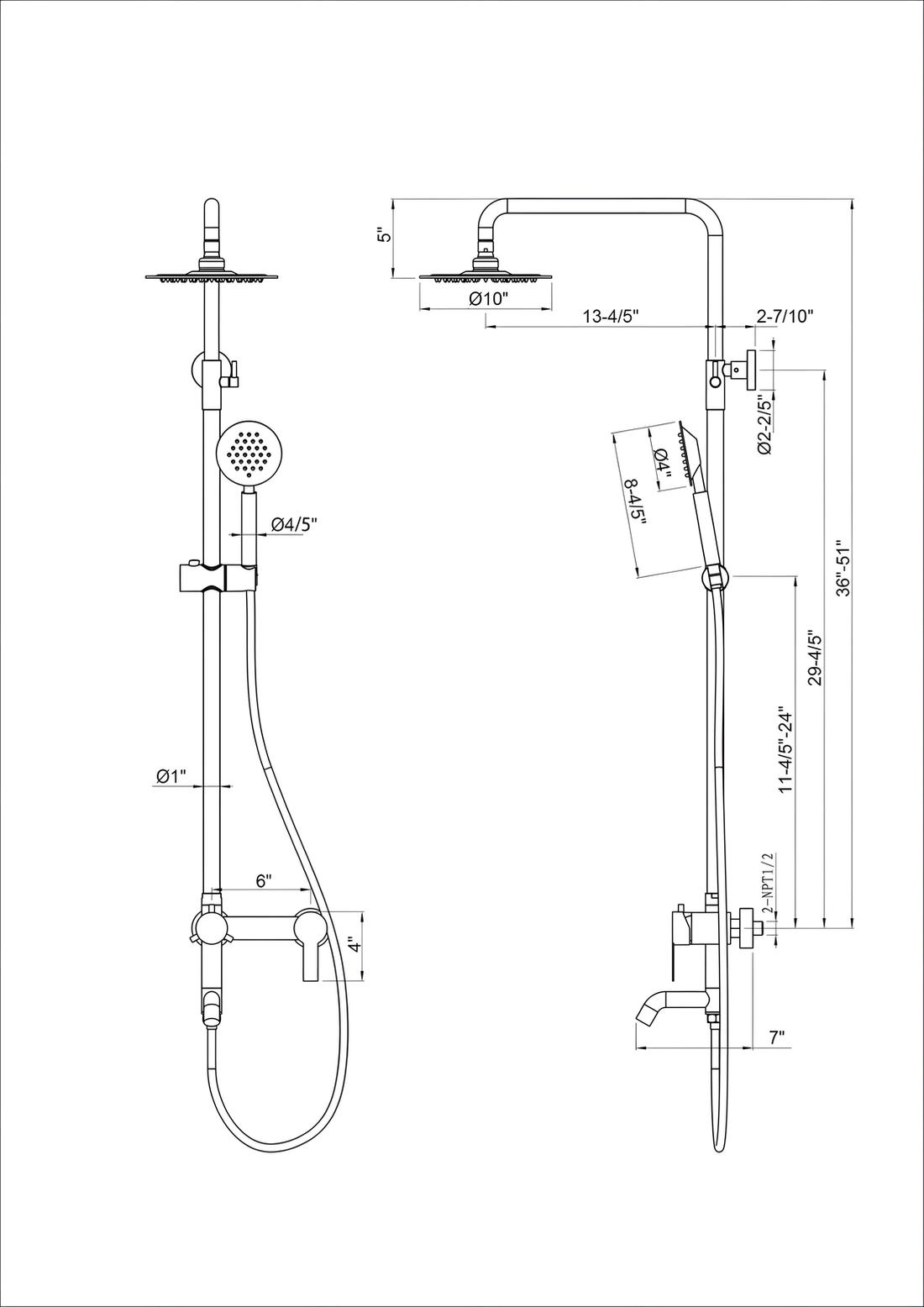 2. Single-function hand shower, Flow rate: 0.55 MPa (6 L/min), Material: 304 Stainless Steel, Non-rotatable