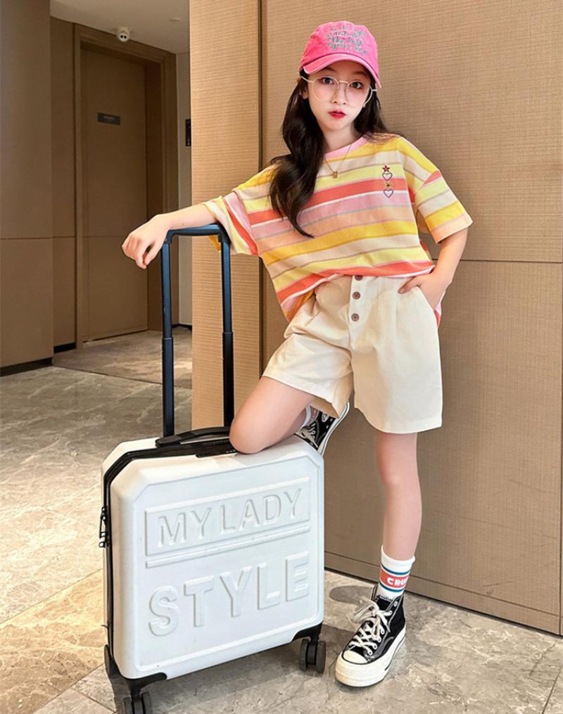 Spandex & Baumwolle Mädchen Kleidung Set, Gestreift, Festgelegt