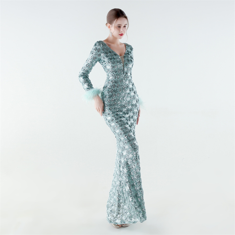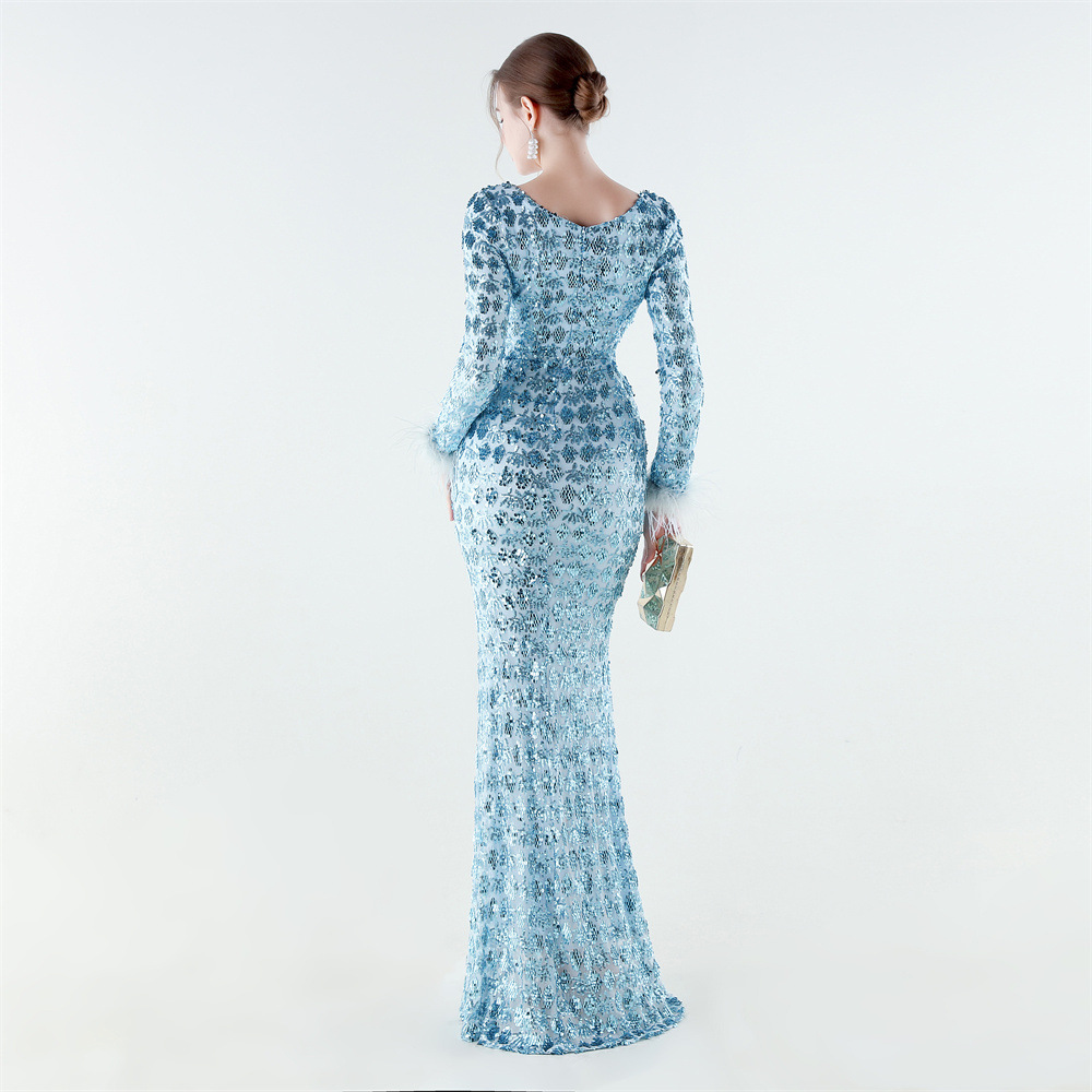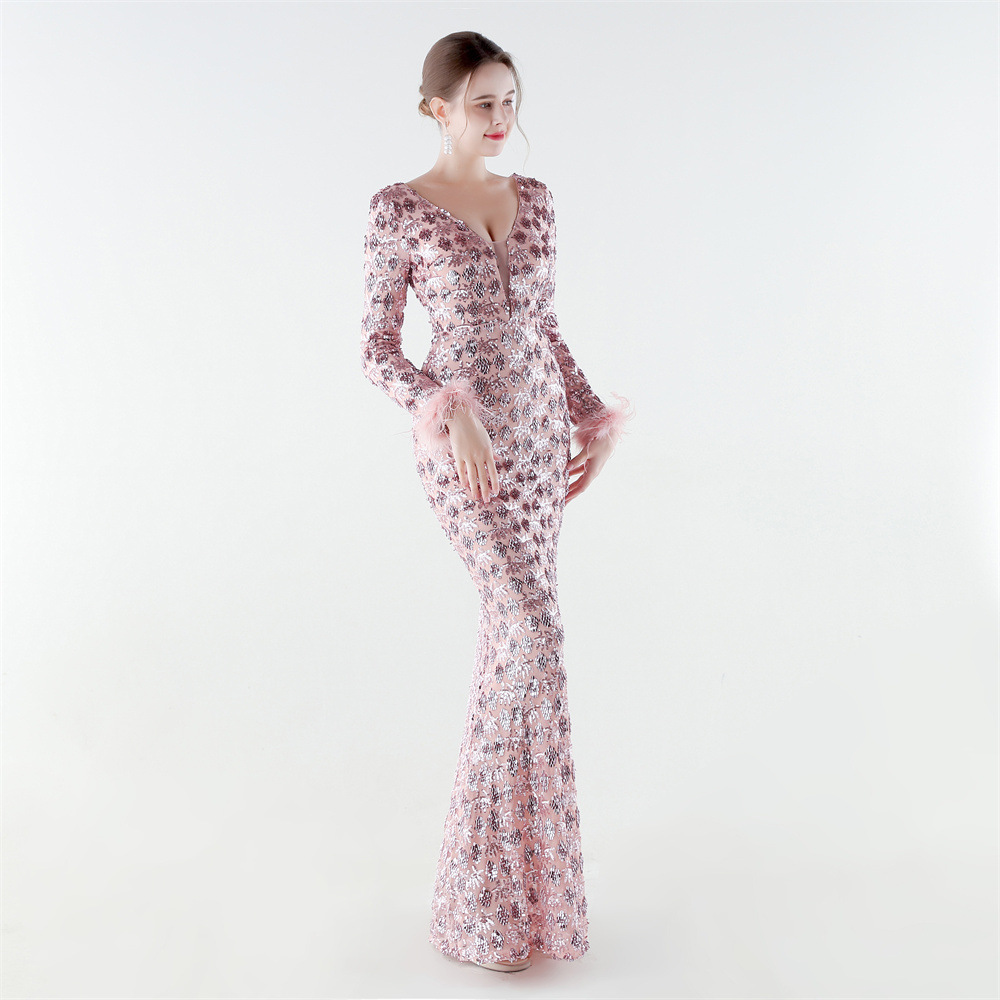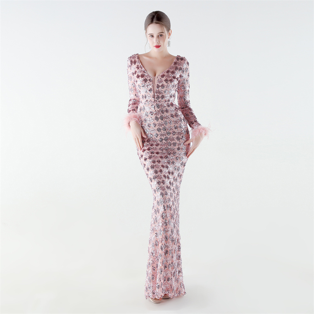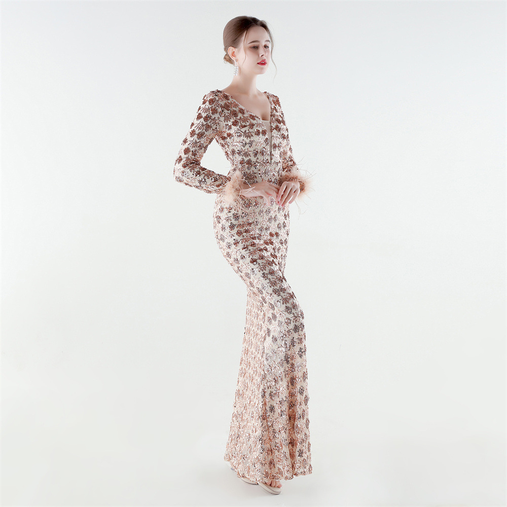 Spandex & Polyester Langes Abendkleid, Pailletten, mehr Farben zur Auswahl, Stück