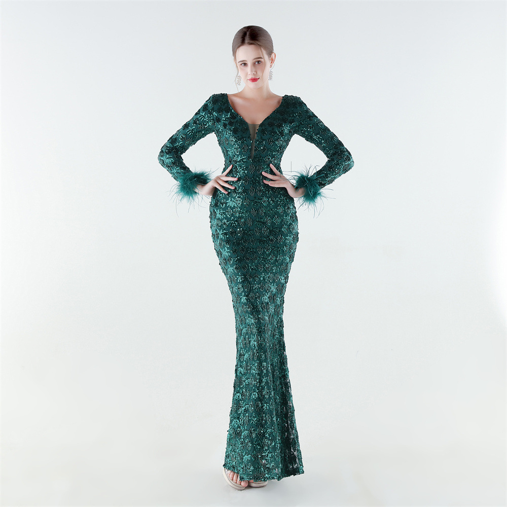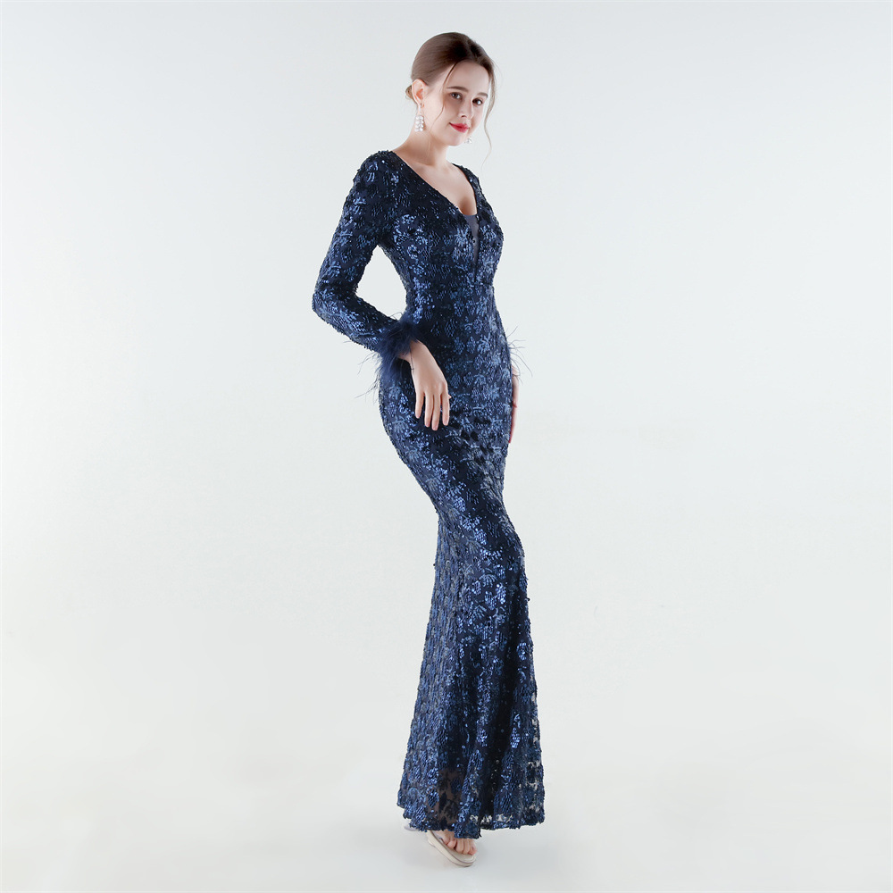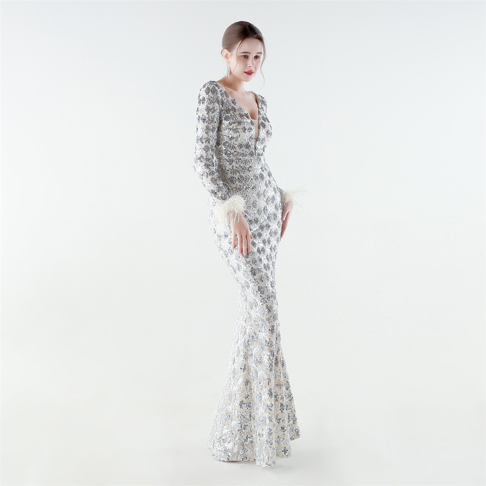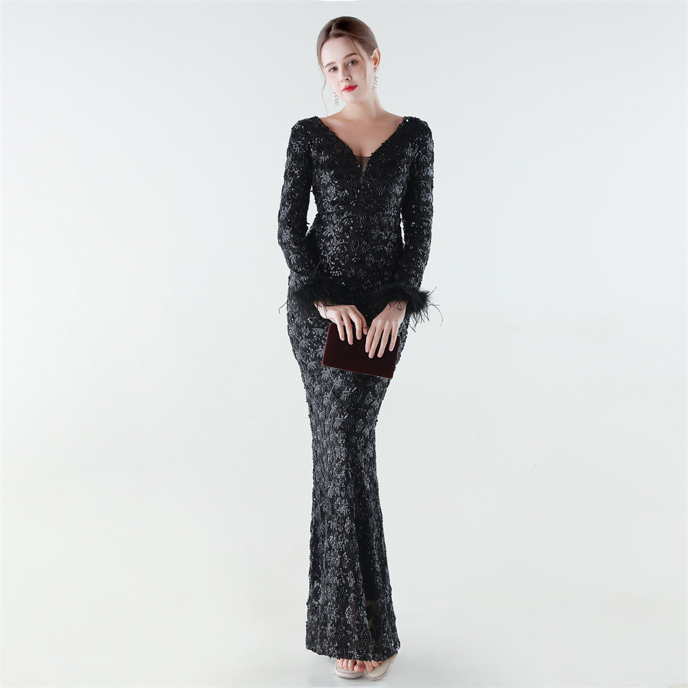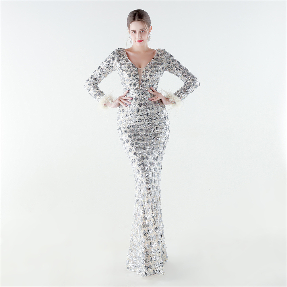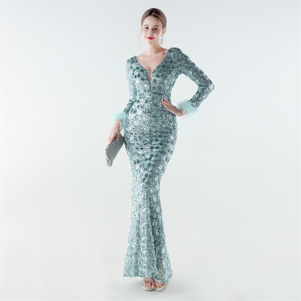 Spandex & Polyester Langes Abendkleid, Pailletten, mehr Farben zur Auswahl, Stück