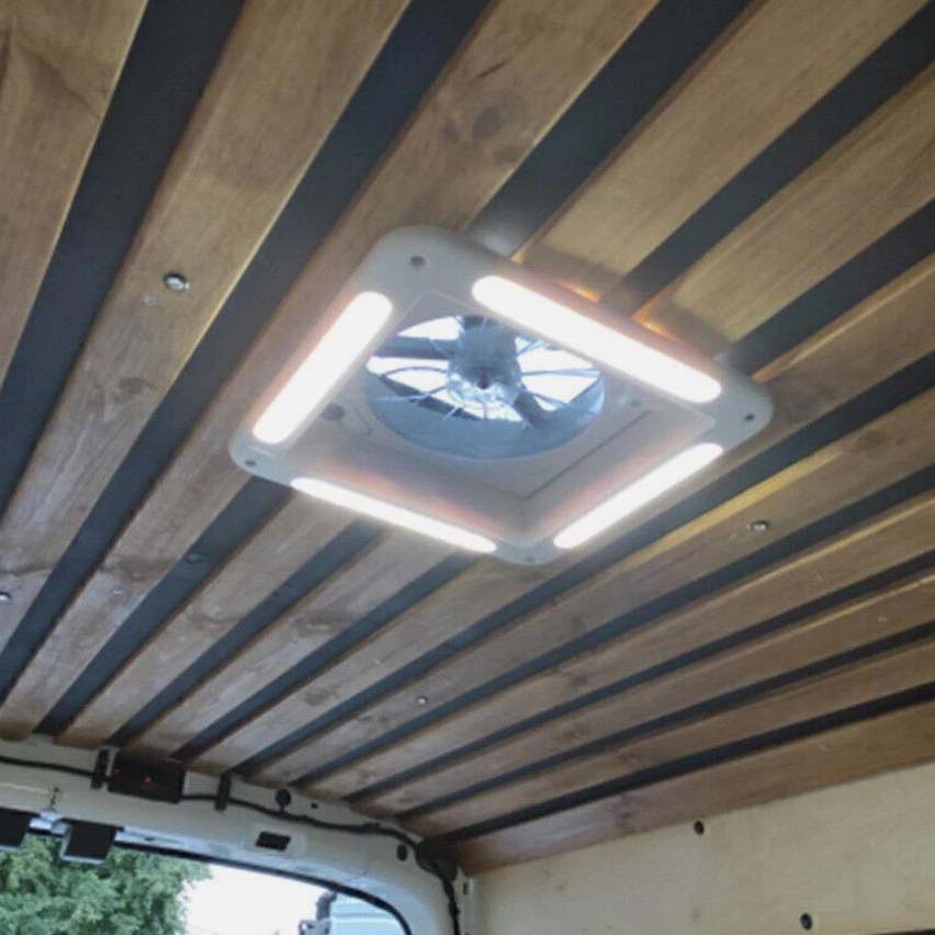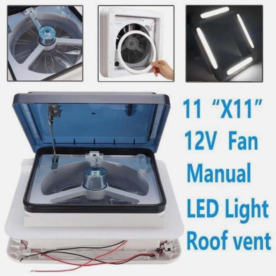 Ventilador de techo de 12 V para autocaravana, caravana, tragaluz con luz LED