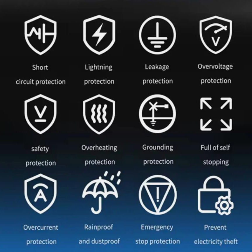 Protección contra sobretensiones, protección contra puesta a tierra, protección contra fugas, etc.