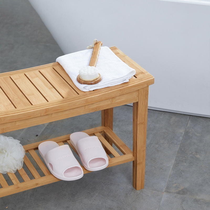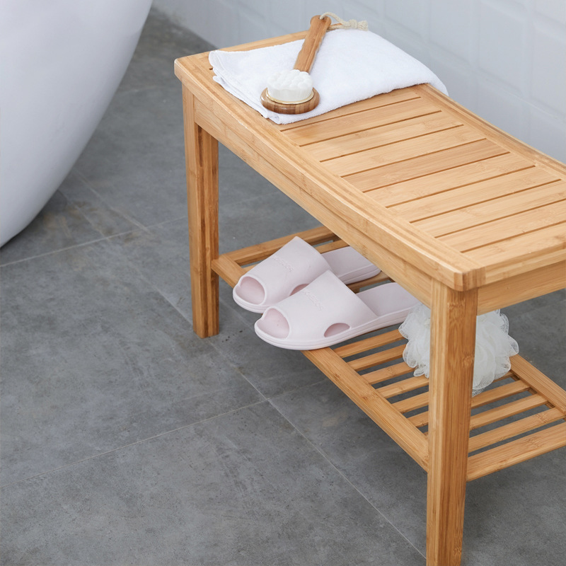 Bamboo Bathroom Stool Solid Wood Shoe Changing Stool Bathroom Rack Multifunctional Stool