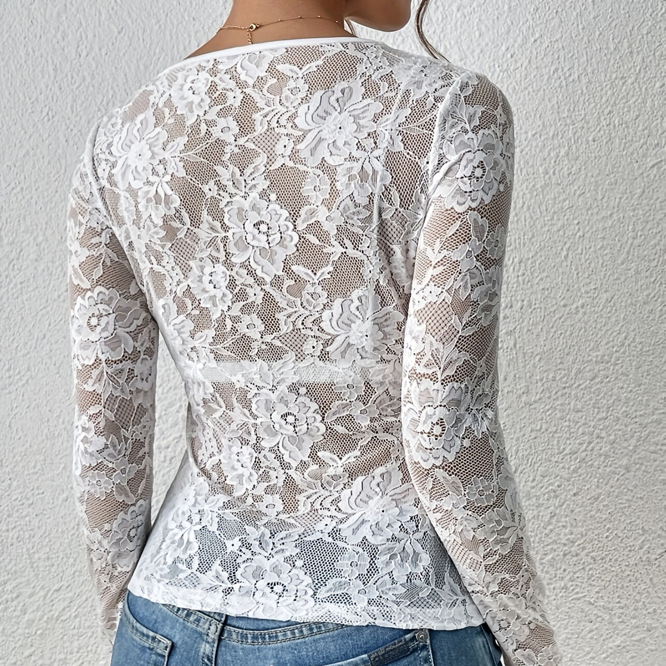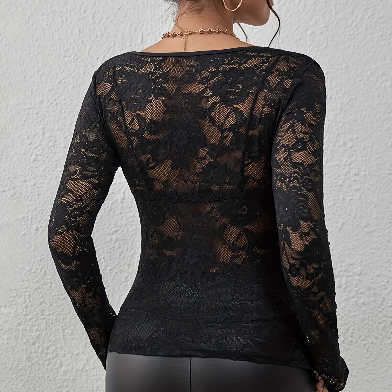 Cordón Mujeres Blusas de manga larga, labor de retazos, Sólido, más colores para elegir, trozo