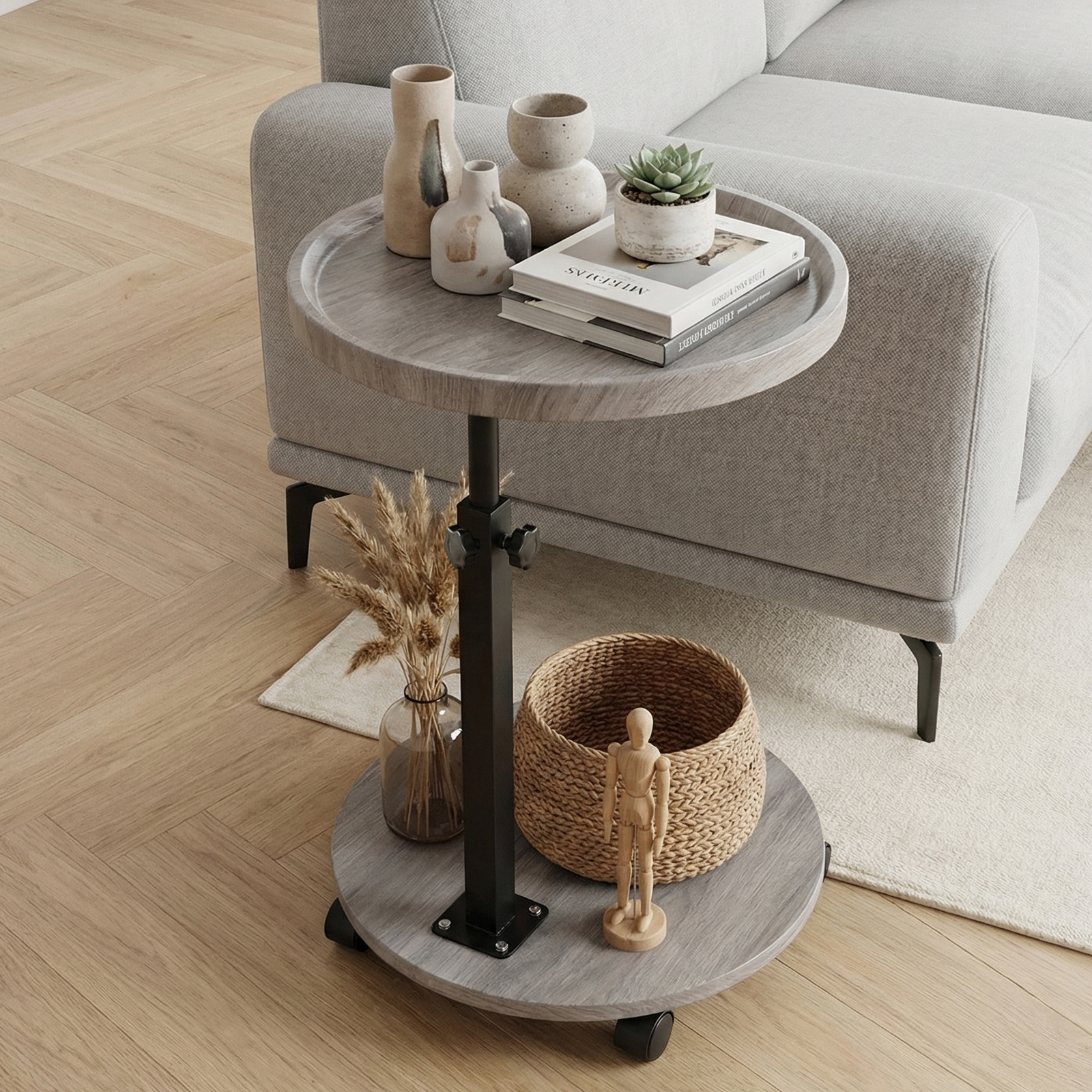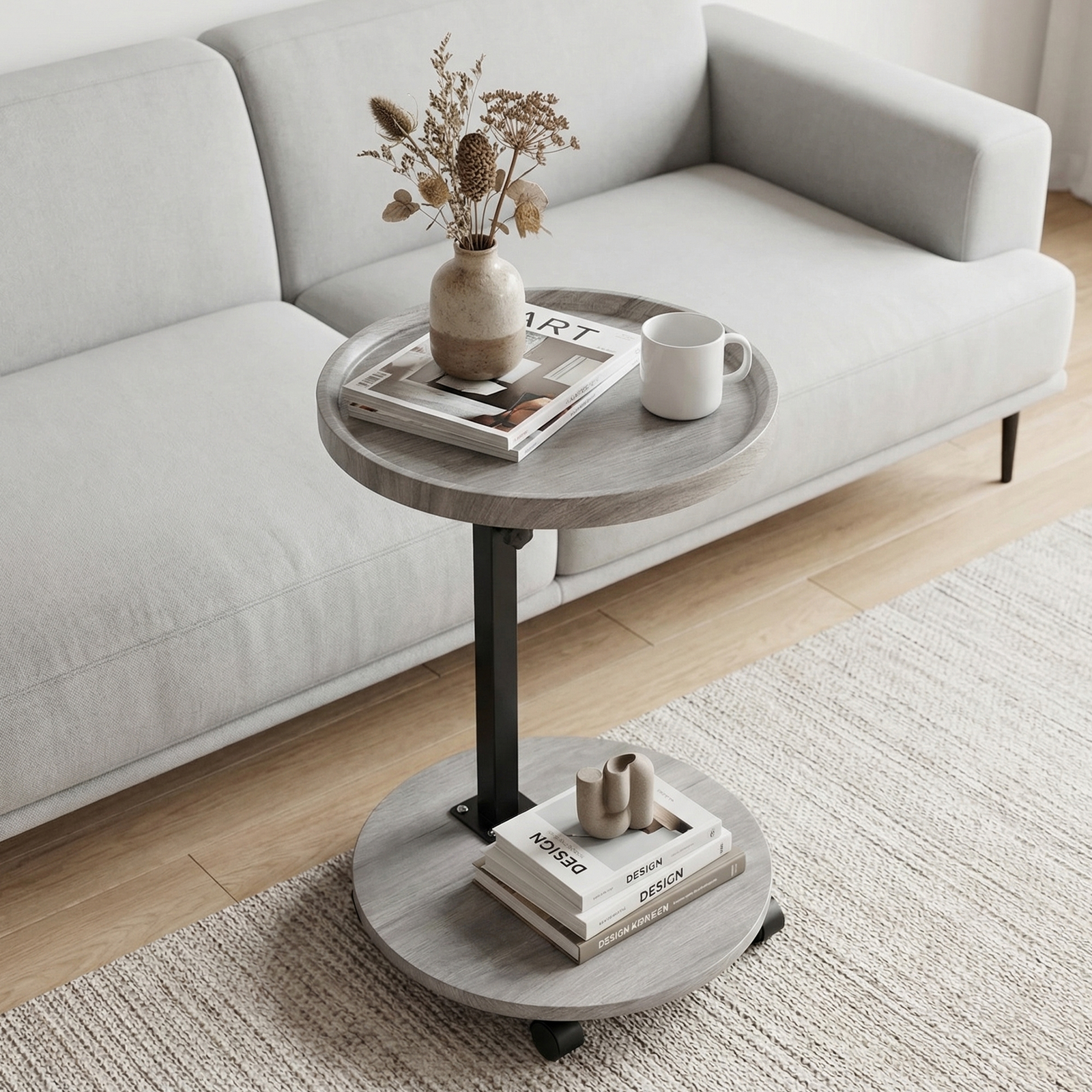 Fibra de madera de densidad media & Hierro Mesa auxiliar, gris, trozo