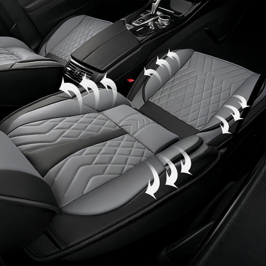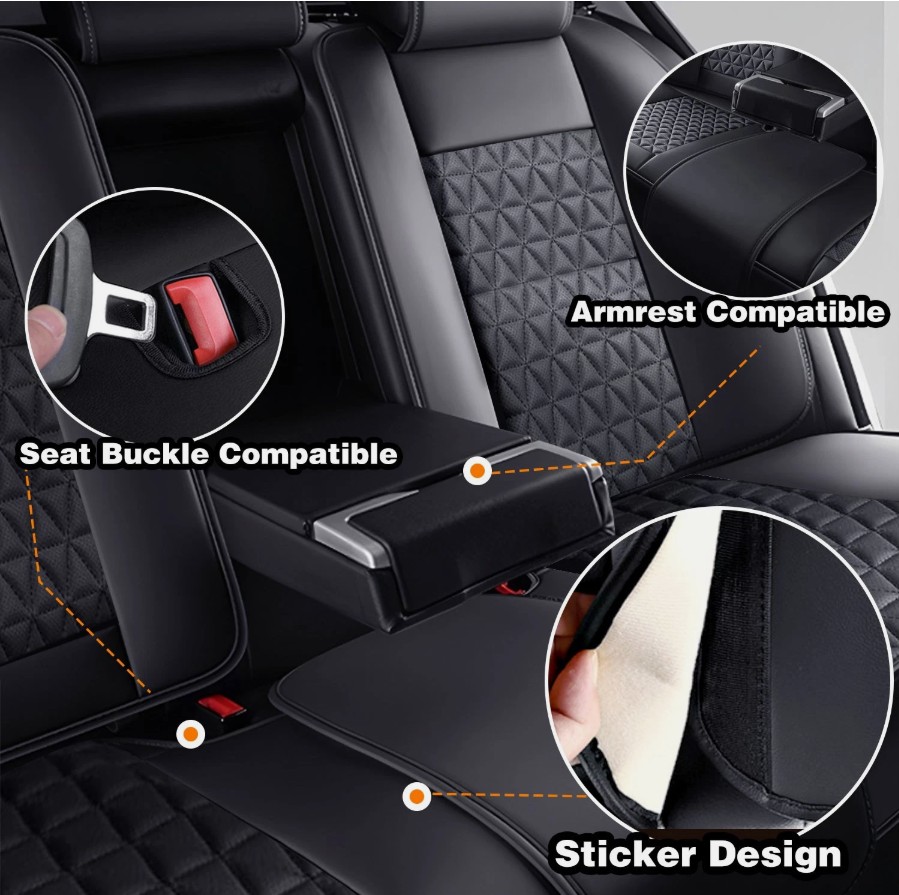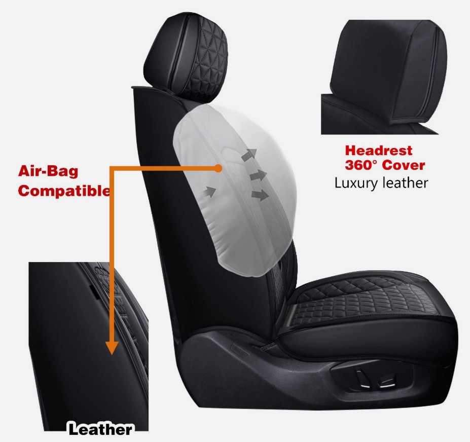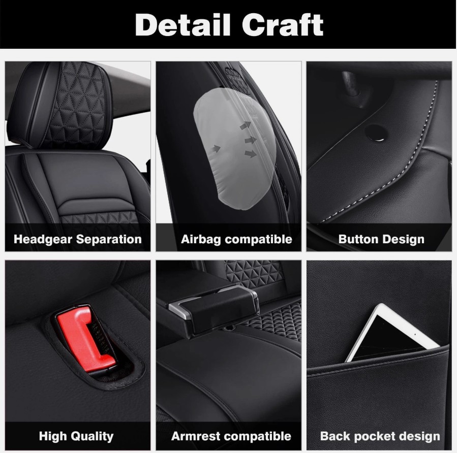 Correas ajustables, compatible con airbags, antideslizante, transpirable, acolchado, fácil instalación, compatible con airbags laterales, tacto suave, compartimento de almacenamiento, resistente a los rayos UV, lavable, resistente al agua, impermeable.