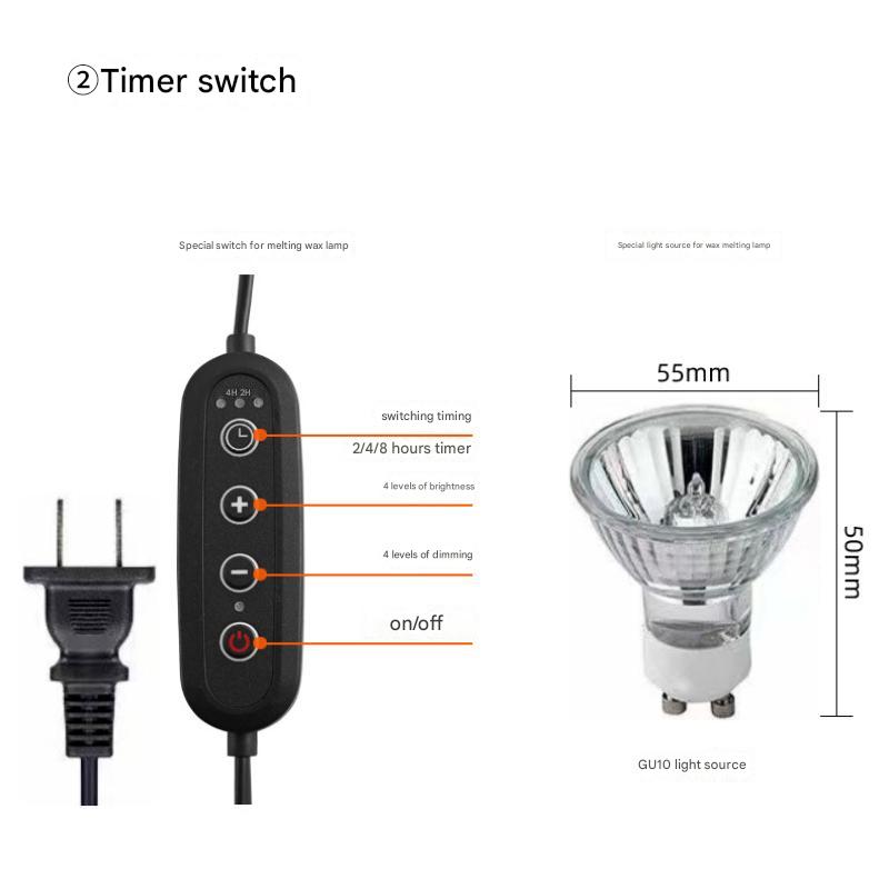 【Función de temporización】 Conjunto para 2H, 4H o 8H, garantizando la seguridad y la comodidad. La lámpara calentadora de velas le permite personalizar el tiempo de calentamiento según sus necesidades.