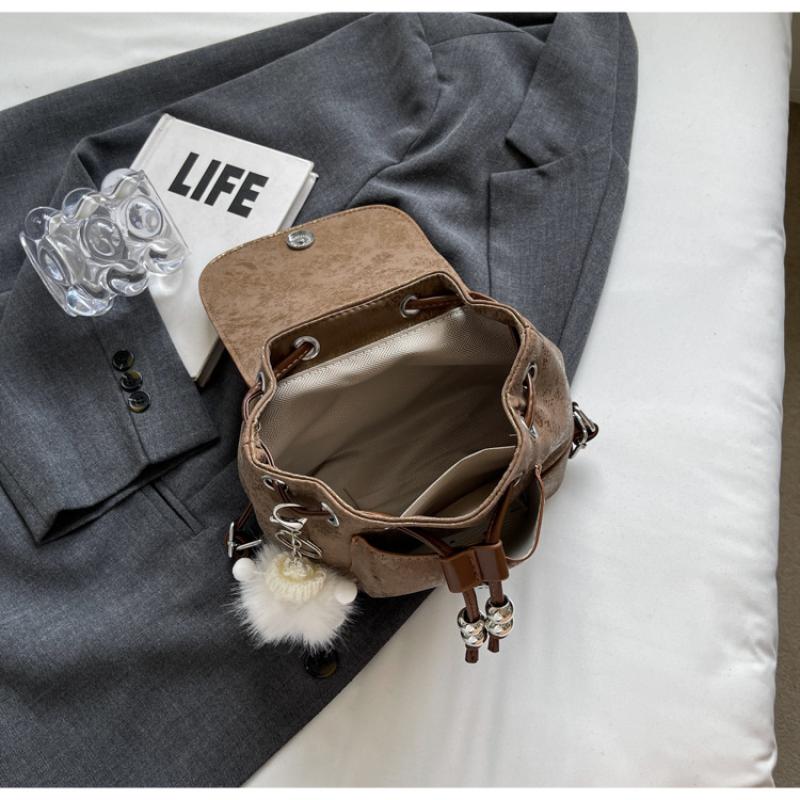 New Fashion Solid Color Bucket Backpack Women's Stylish Simple Small Backpack