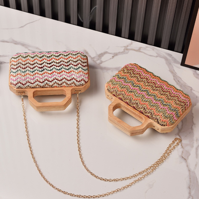 Paja Bolsa de hombro tejida, Correspondencia de colores, más colores para elegir, trozo