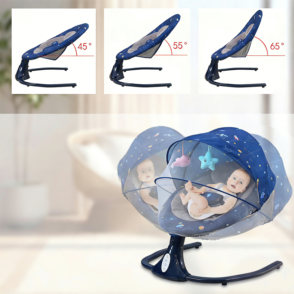★ ★ ★ ★ ★ 508/02/2022Great quality baby swingVery comfortable and safe Baby Swing.We like it so much. Its really quiet and has different swing speeds.Scott Corbett