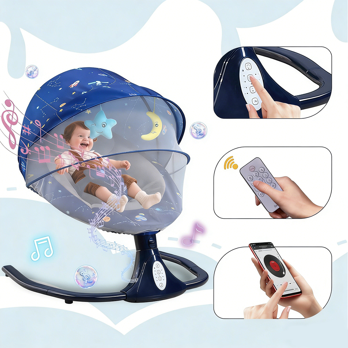 ★ 110/03/2022Keeps baby happyit is assembled it works well, although it's a bit noisy. The swinging action and the white noise or music combine to pacify your baby. It absolutely works and is good value for money.Cathy