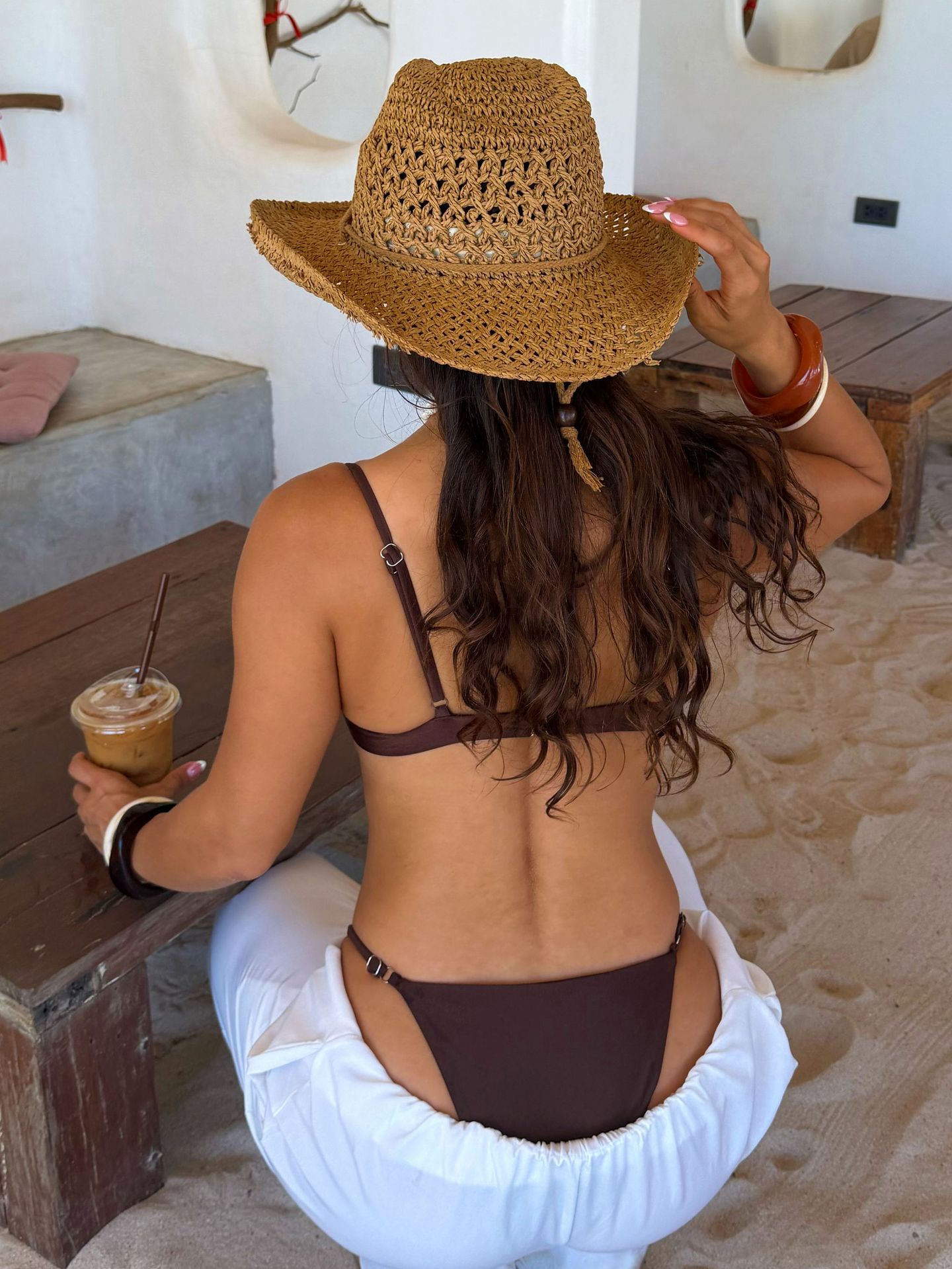 Poliamida & Poliéster Bikini, Sólido, café, Conjunto