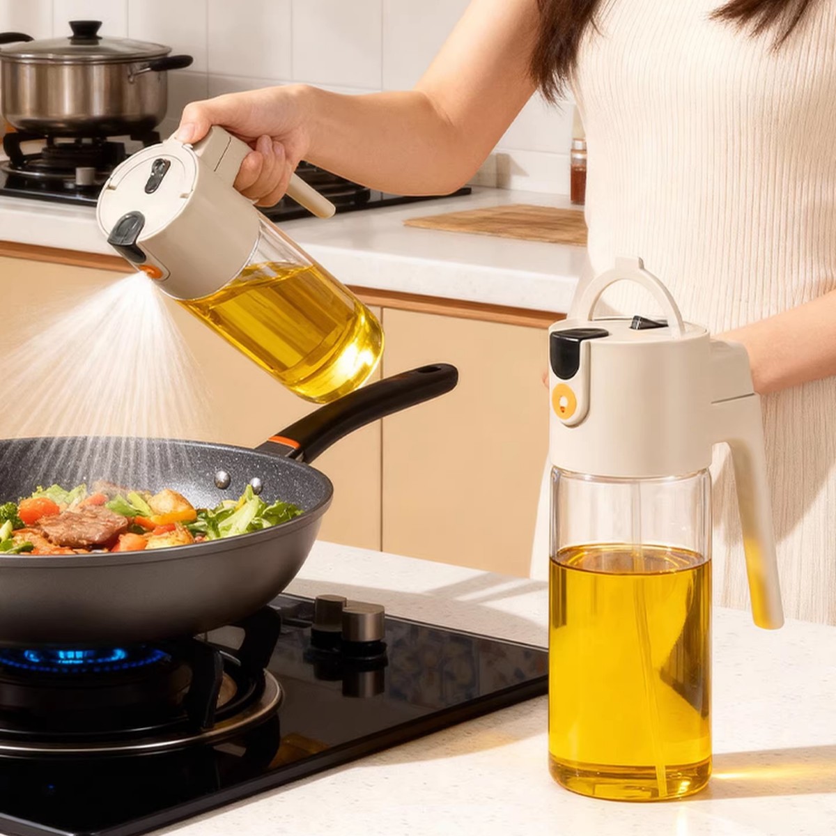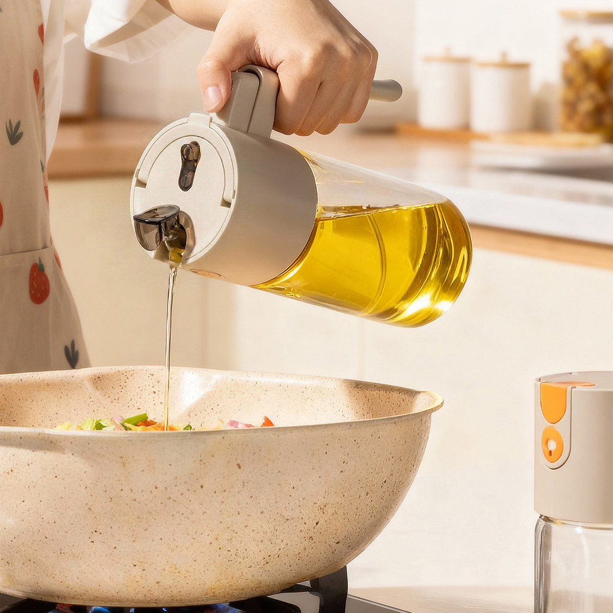 Polipropileno-PP Botella de aceite, Vaso & PC-policarbonato & Silicona, naranja, Conjunto