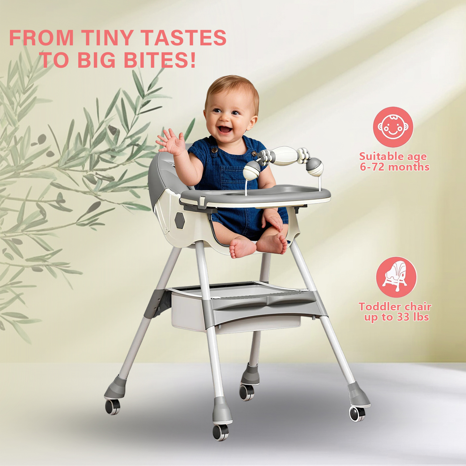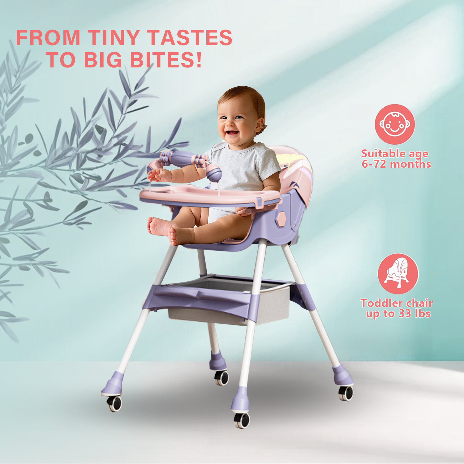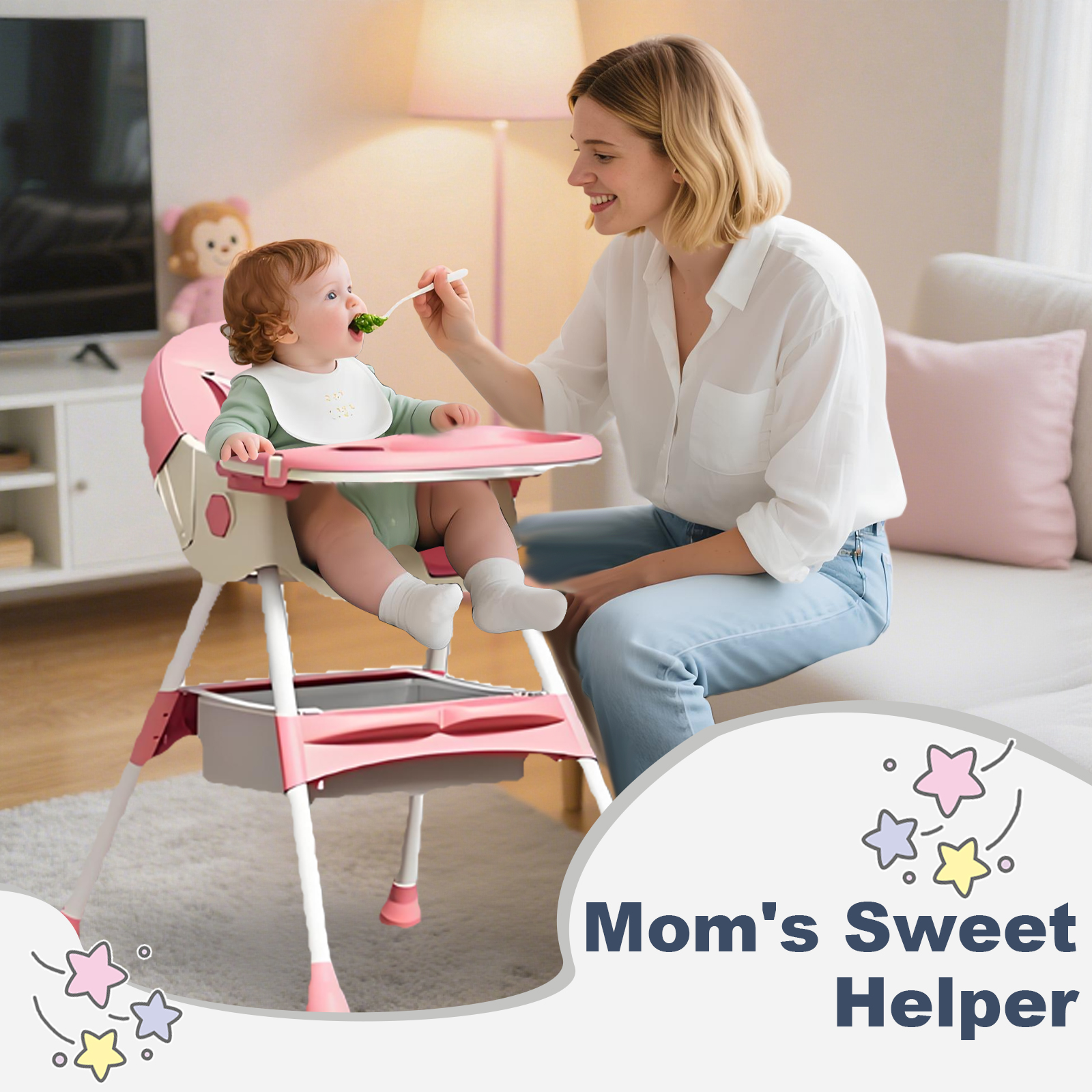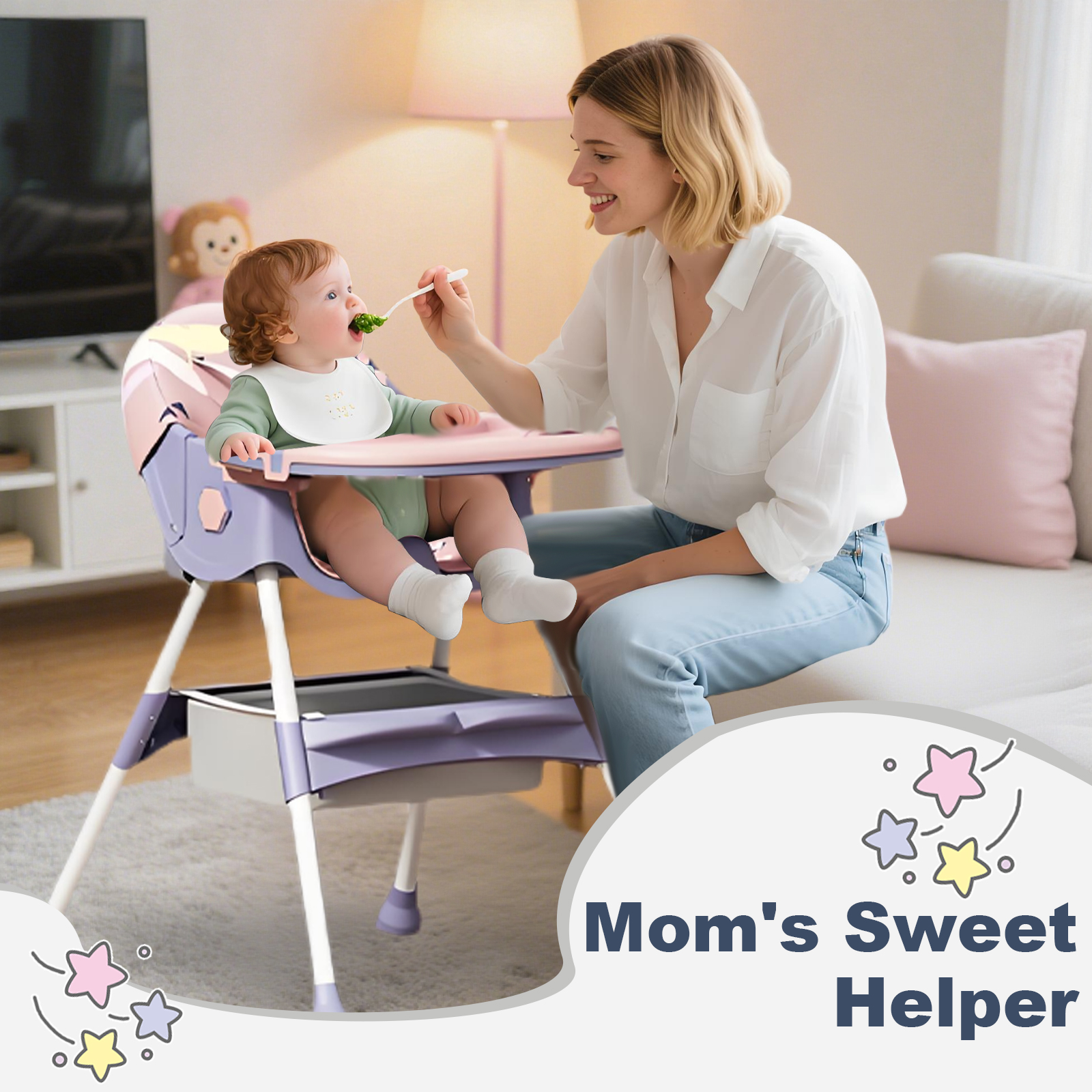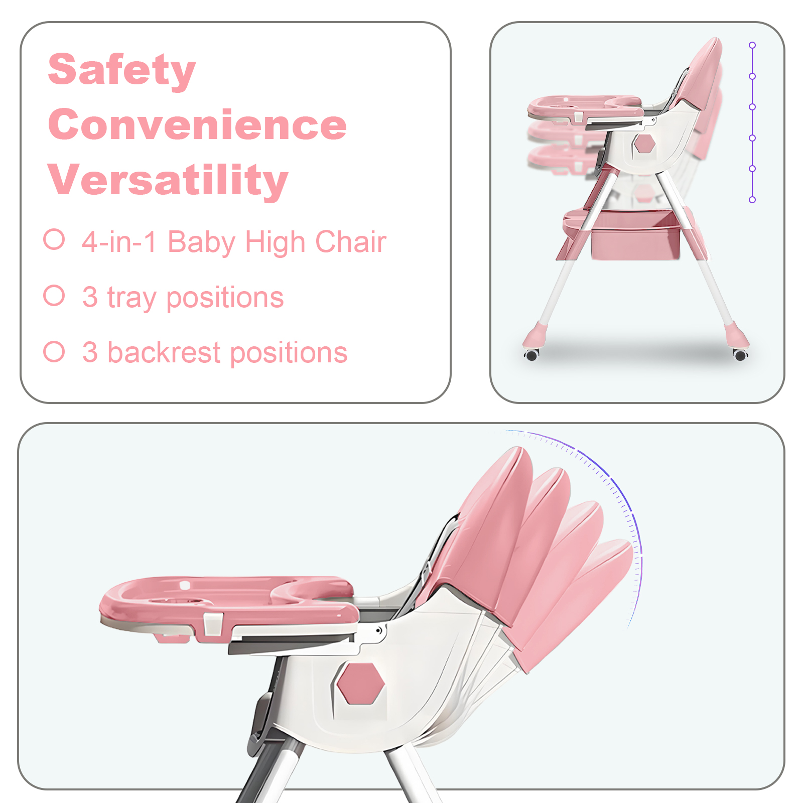 ★ ★ ★ ★ ★ 508/08/2022Great for the price!We needed a high chair fast so we ordered this one. It is easy to clean and a nice chair for the price. I like that it folds up and can be tucked away when not in use. The only thing I don’t like about it is you need two hands to pull the tray in and out as well as unfolding it from storage.Evelyn