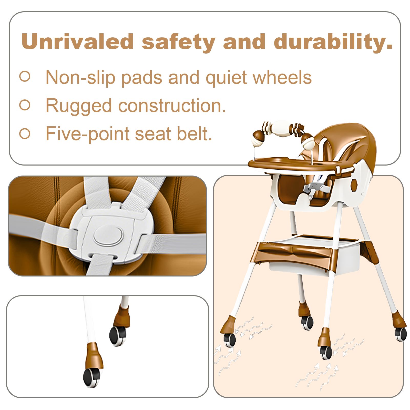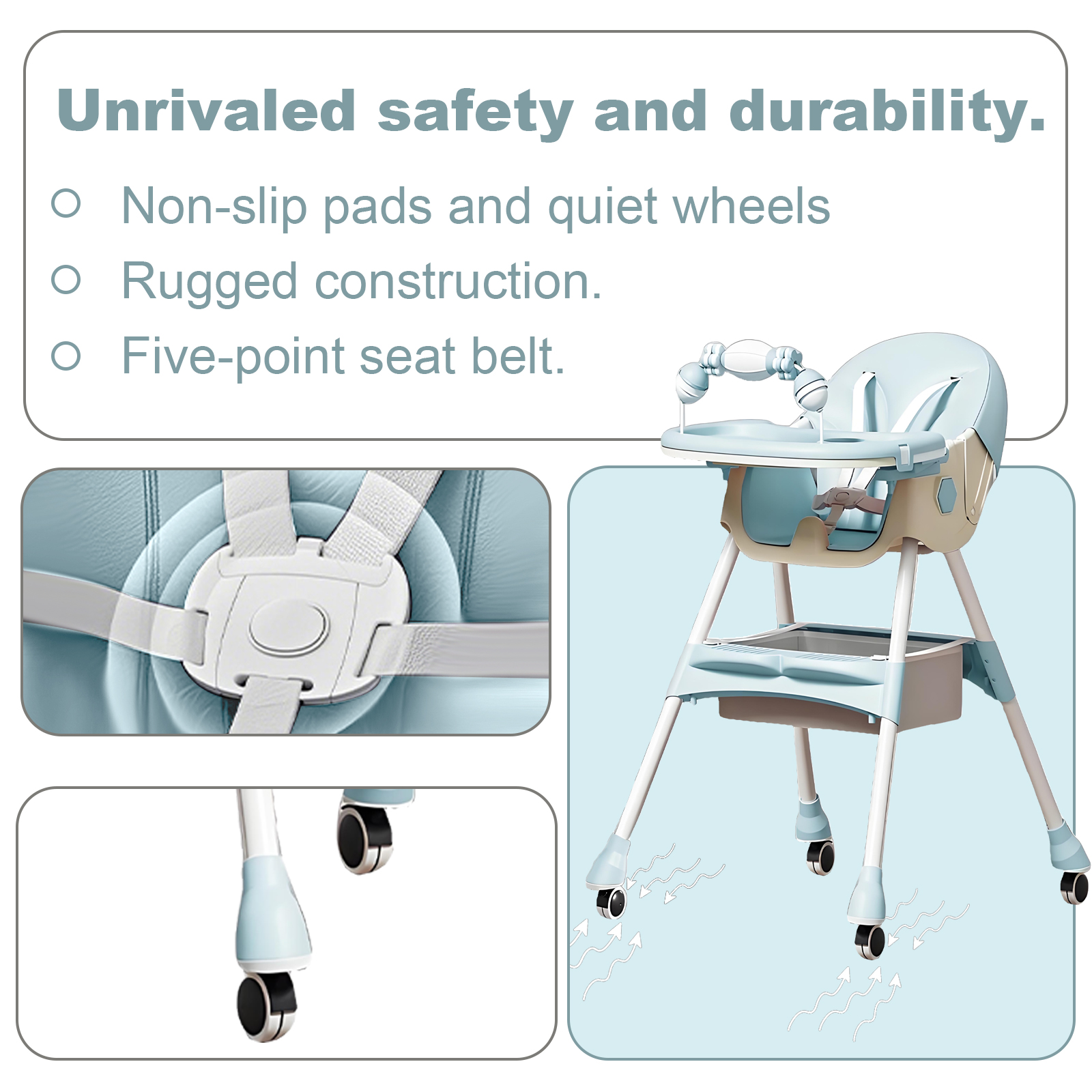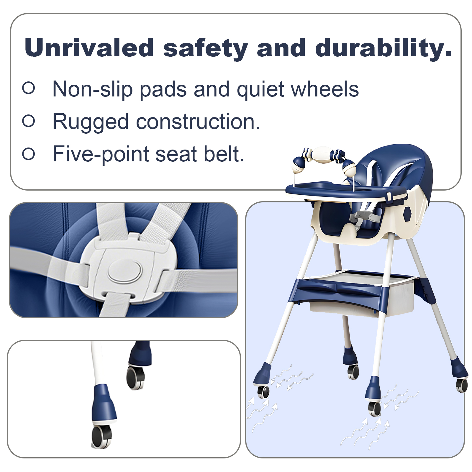 ★ ★ ★ ★ ★ 508/09/2022Sturdy chair!I likes this chair. It is sturdy and the legs spread out enough to make it well balanced. Love the removable food tray because once you lift it away, the base tray is pretty clean.Sabrina