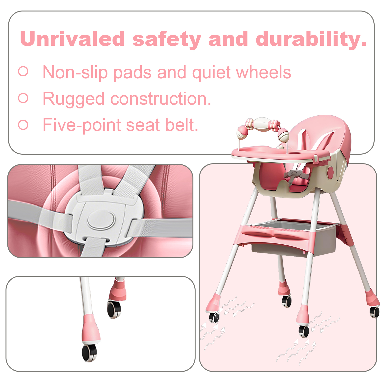 ★ 108/09/2022This is perfect!I love the chair!!! it’s easy to clean and sturdy ! my baby moves a lot, so i needed something secure for her that she could not get out of and this does it! and the highchair can make the legs go back to be able to put it up.Samantha
