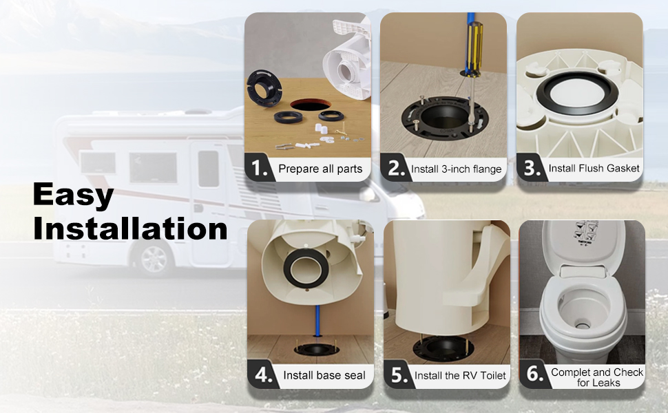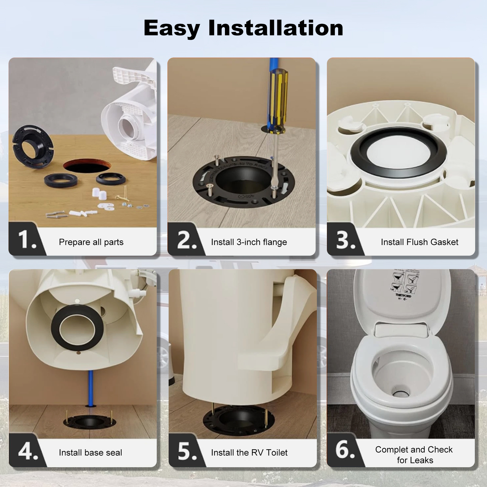 Compatibilidad: Sello de inodoro de RV y kit de brida de suelo de enchufe de 3 "compatible con inodoros de RV Dometic 300 310 320, perfectamente ajustado y solucionando fácilmente problemas de sellado de inodoros de RV.
